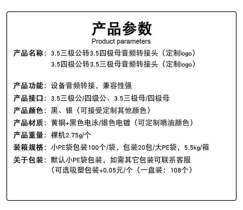 音频转接头  3.5公转接头  3.5母转3.5公转接头 转接头