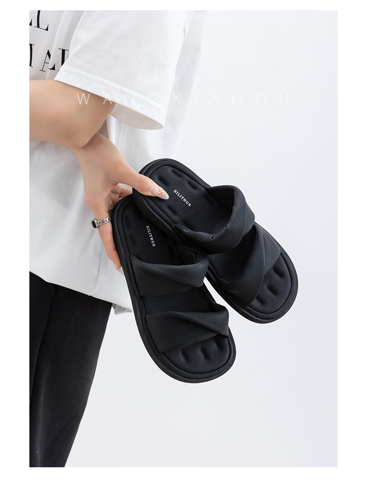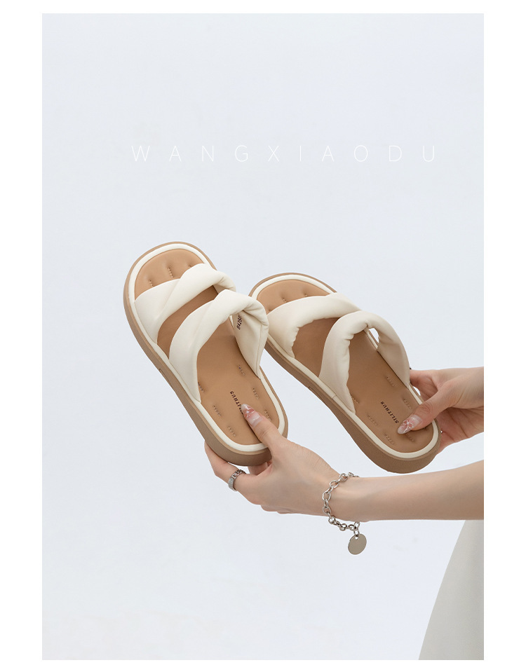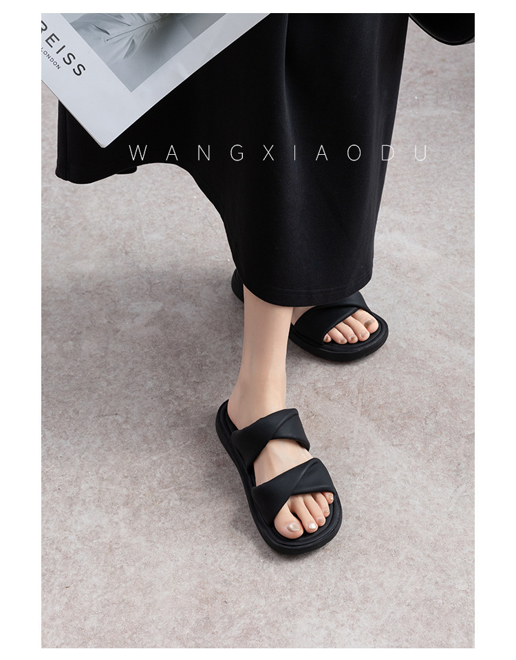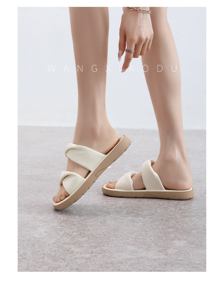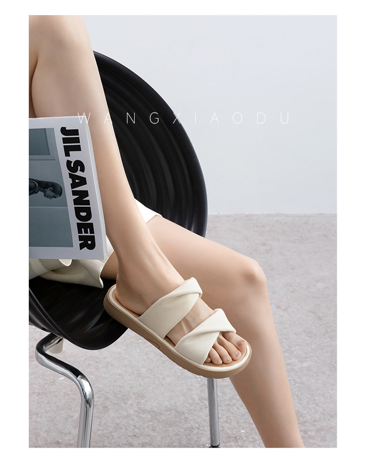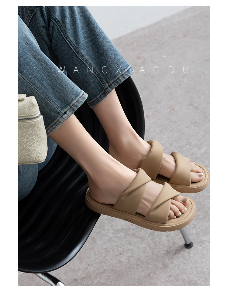 소파 슬리퍼 소프트 플랫 바닥 여성 2024 년 여름 새 스타일 외부 키크 시트 착용 편안한 샌들