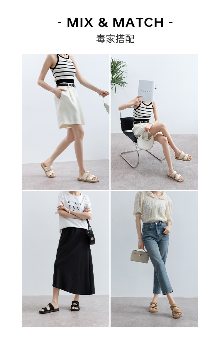 소파 슬리퍼 소프트 플랫 바닥 여성 2024 년 여름 새 스타일 외부 키크 시트 착용 편안한 샌들스토어 가기