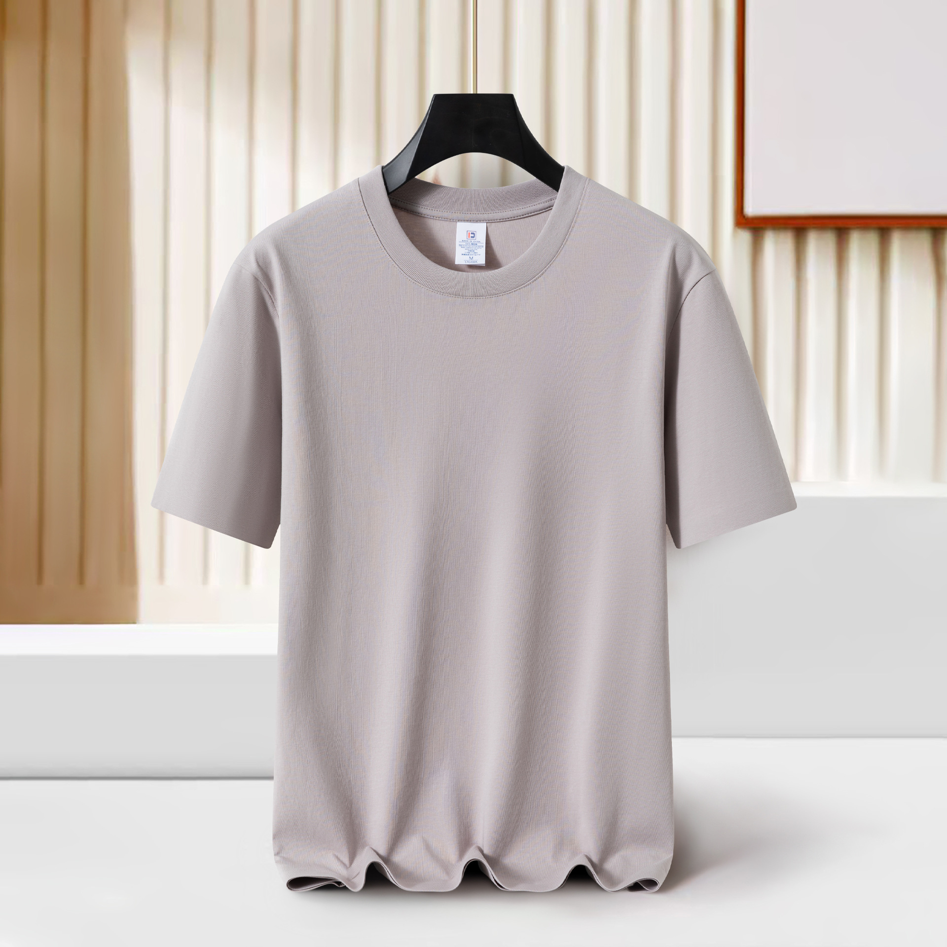 새로운 얼음 액체 암모니아면 티셔츠 210g 원활한 압력 접착제 신기술 어깨 남성 캐주얼 빈 느슨한 짧은 소매