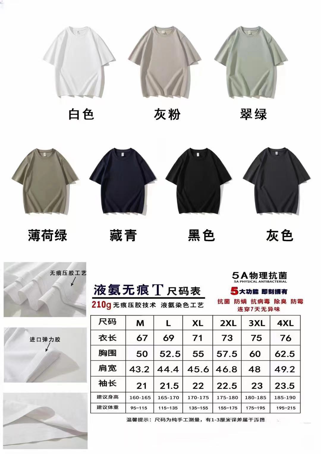 새로운 얼음 액체 암모니아면 티셔츠 210g 원활한 압력 접착제 신기술 어깨 남성 캐주얼 빈 느슨한 짧은 소매스토어 가기