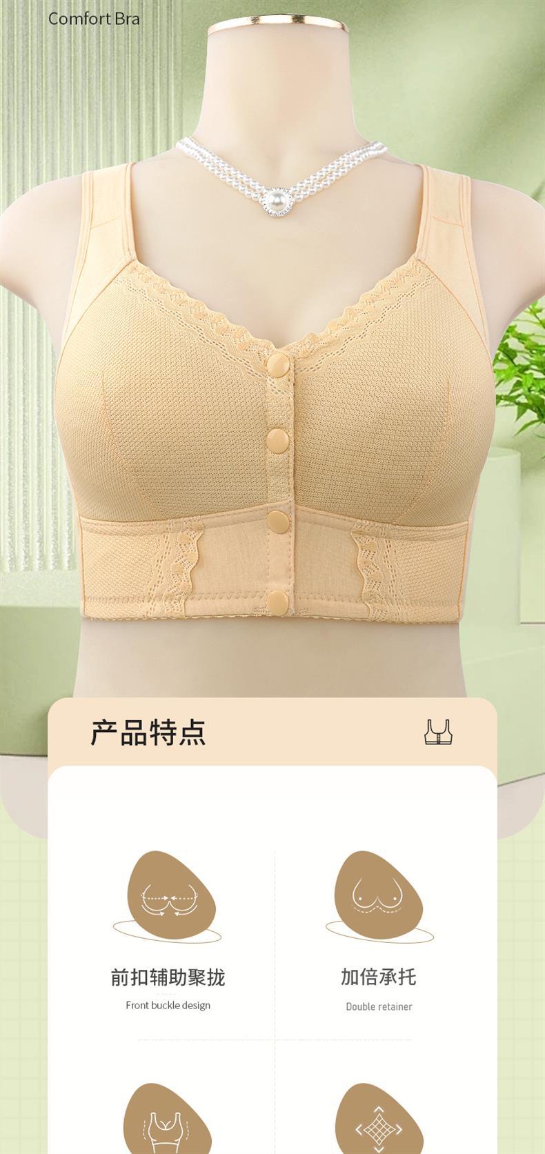 국경을 넘는 인기 상품, 부드러운 면 소재 얇은 컵 앞후크 중노년 여성용 레이스 노와이어 탱크탑 스타일 특대 사이즈 브라스토어 가기