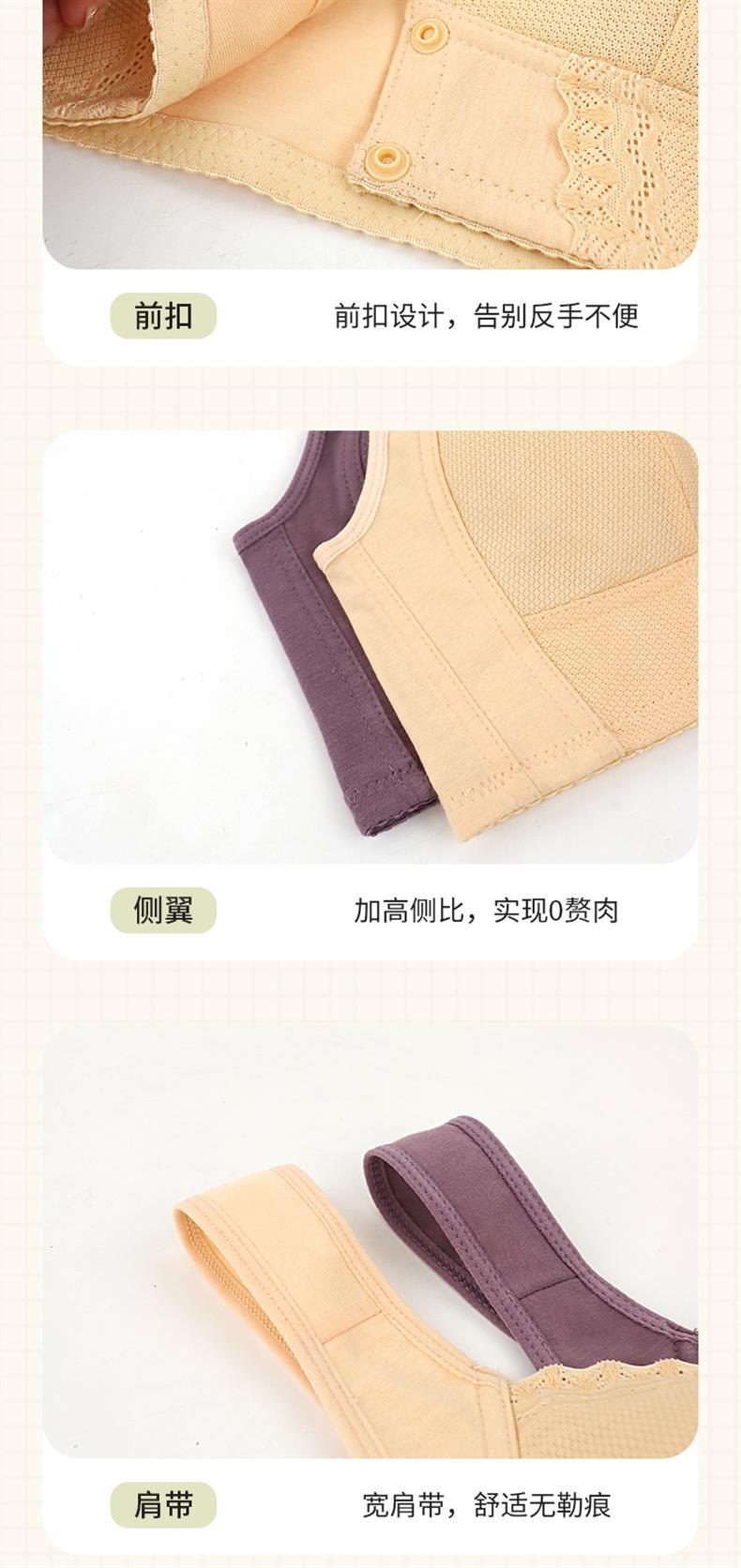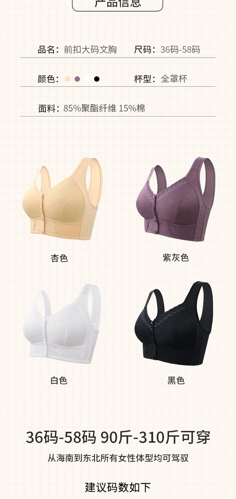 국경을 넘는 인기 상품, 부드러운 면 소재 얇은 컵 앞후크 중노년 여성용 레이스 노와이어 탱크탑 스타일 특대 사이즈 브라