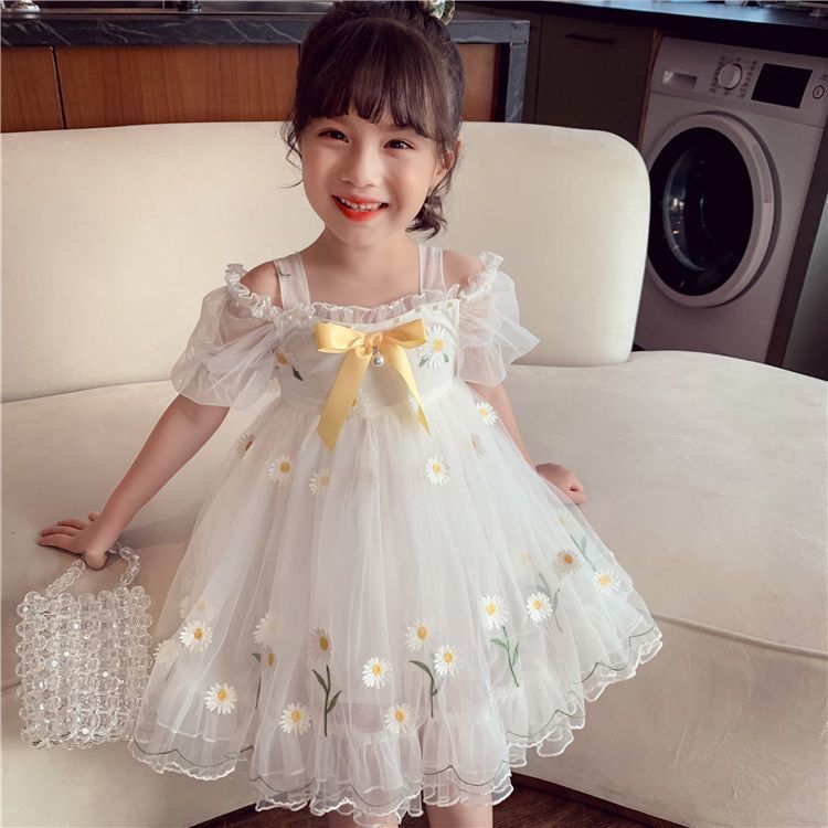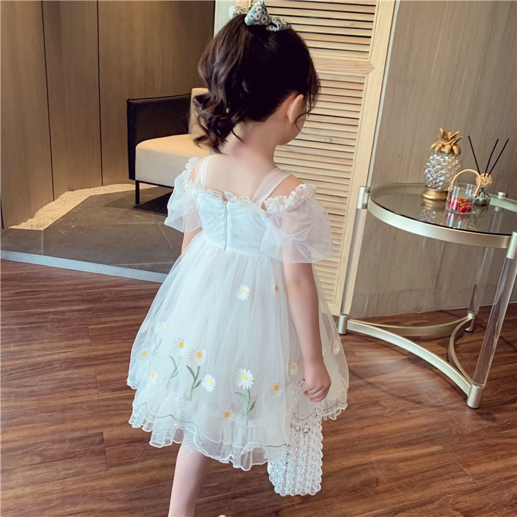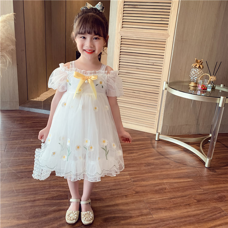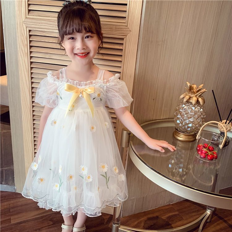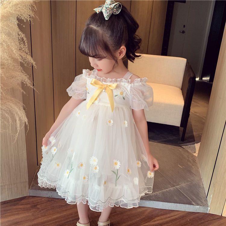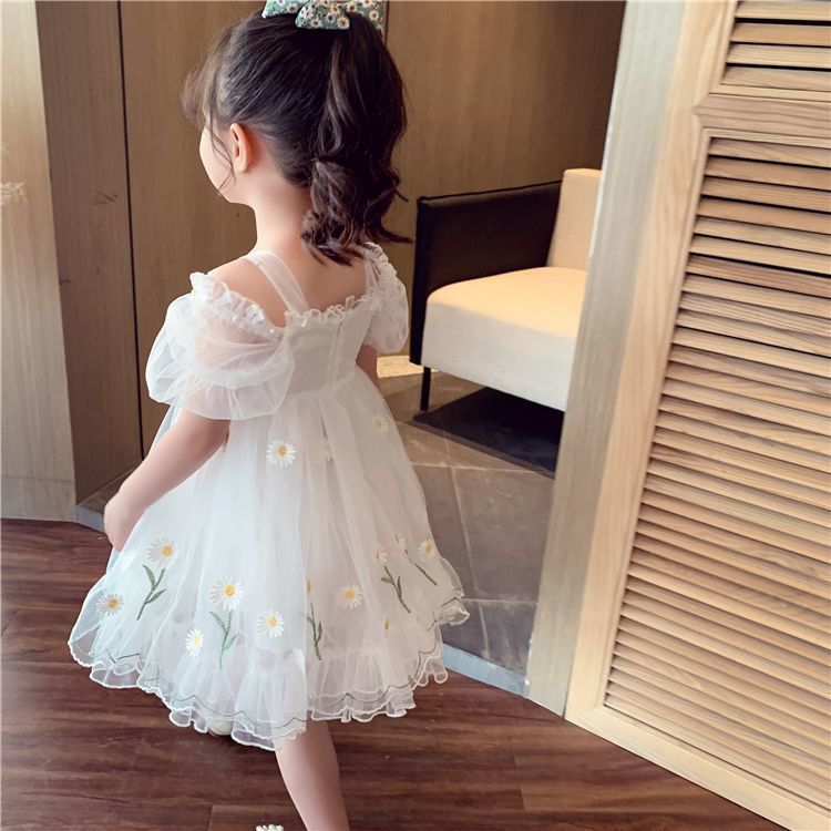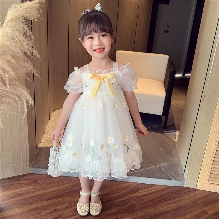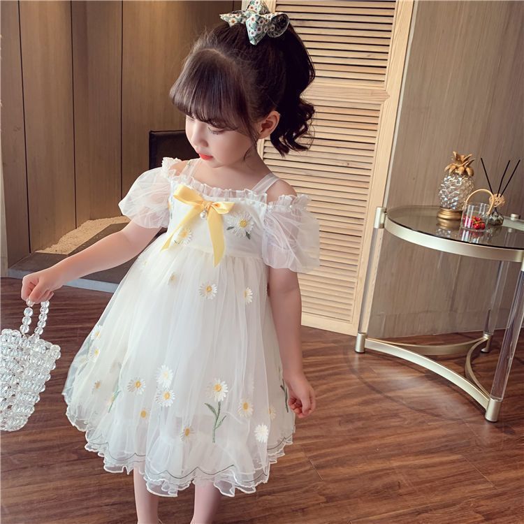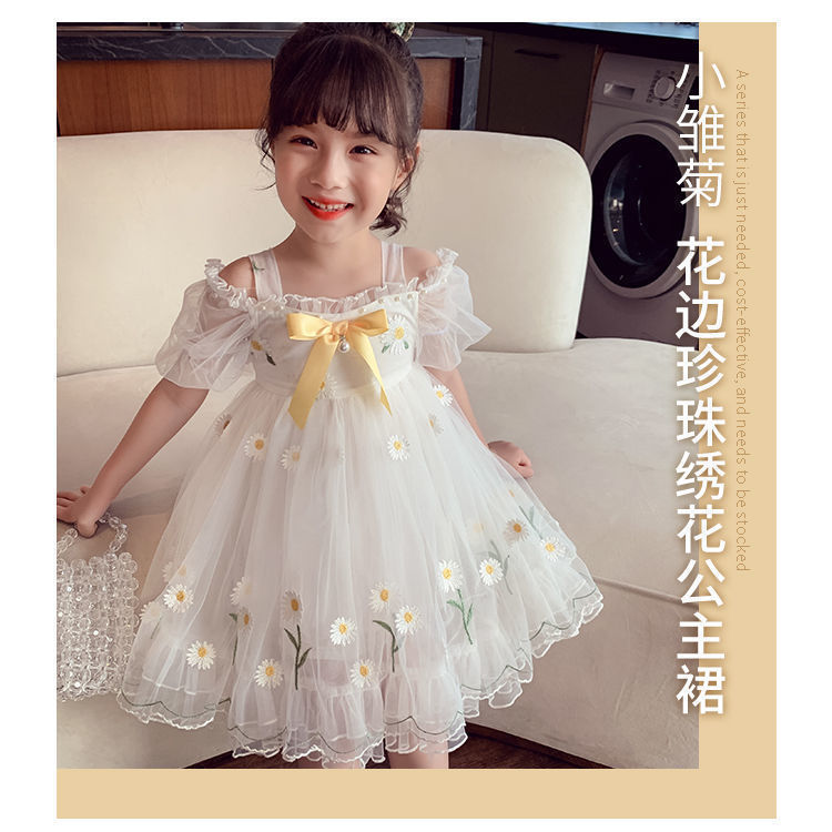 소녀 공주 치마 여름 어린이 치마 2023 새로운 메쉬 작은 데이지 어깨 세련된 어린 소녀 원피스스토어 가기