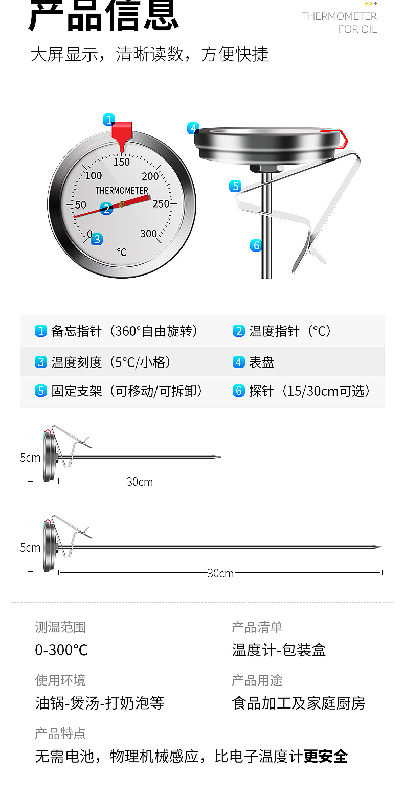 • 튀김 온도계 15CM 프로브(0-300 측정 가능)℃)