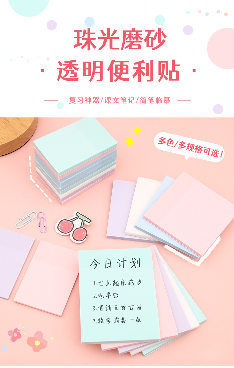 진주광택 무광 스티커 메모지 학생용 고급스러운 투명 접착 메모지 컬러풀 반짝이 메모지 도매