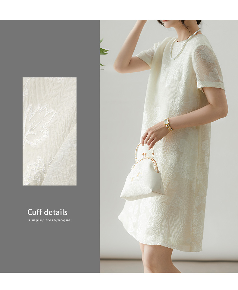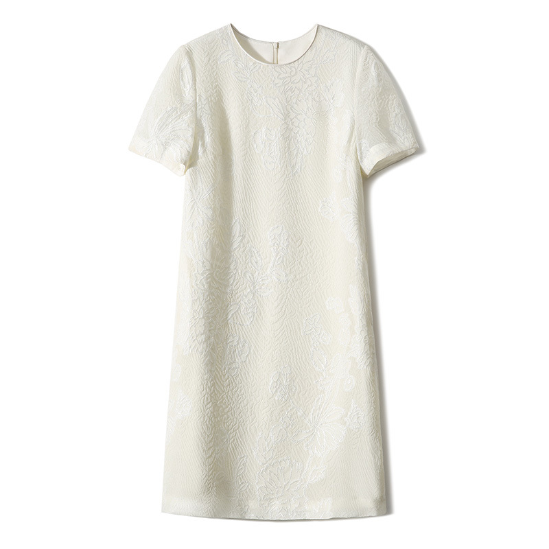 실크 자카드 드레스 고급스러운 신중국풍 치파오 뽕나무 실크 스커트 여름 화이트 항저우 여성복 여름스토어 가기