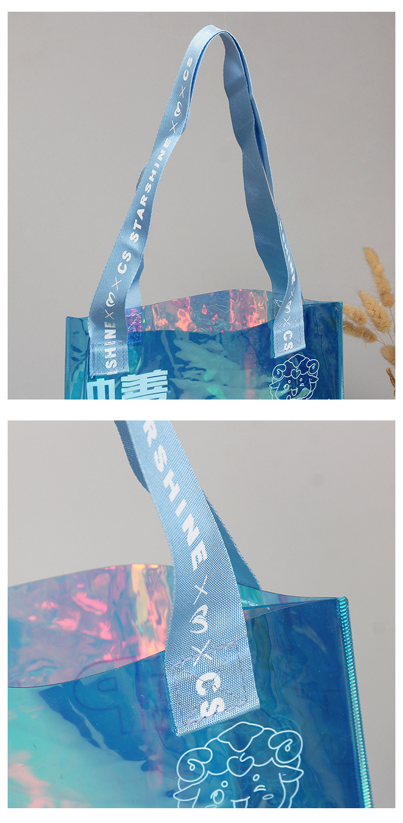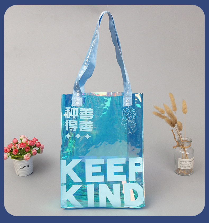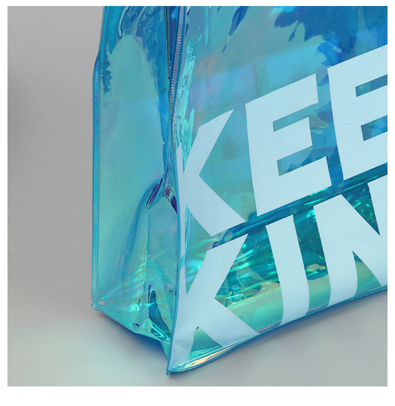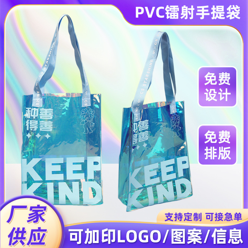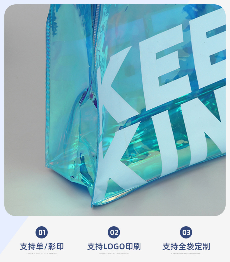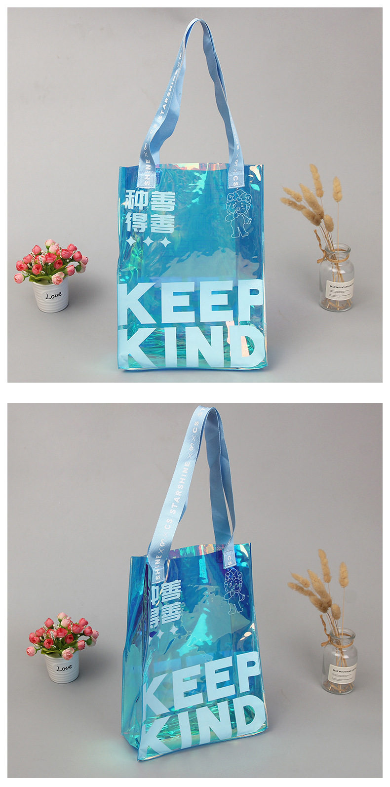 PVC 레이저 토트 백 광고 슈퍼마켓 쇼핑백 대용량 화장품 포장 백 인쇄 가능한 로고