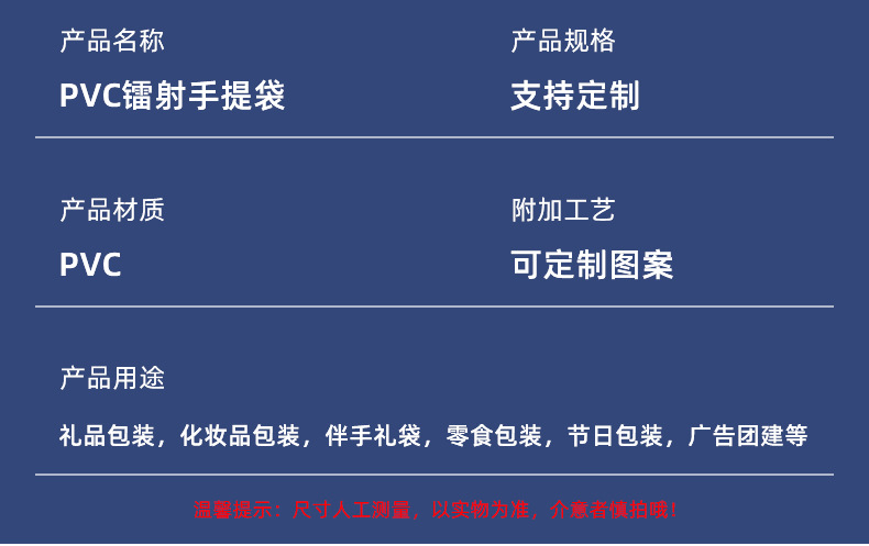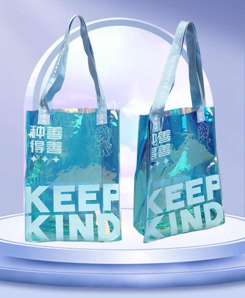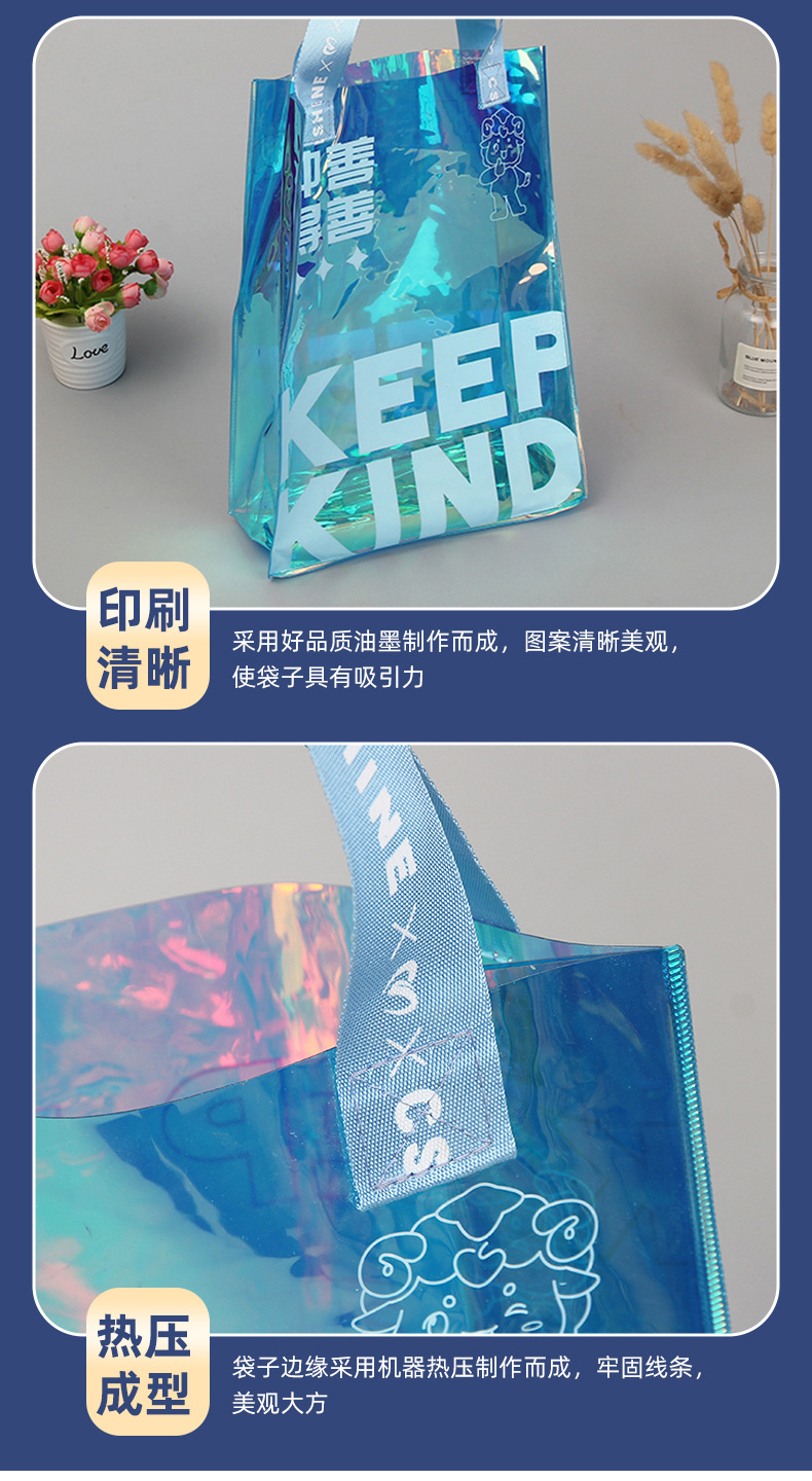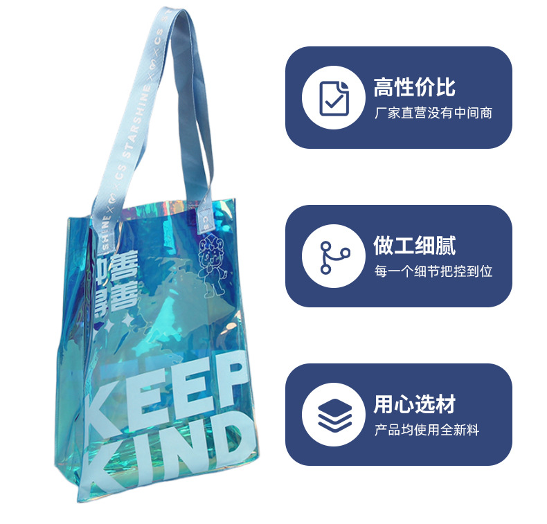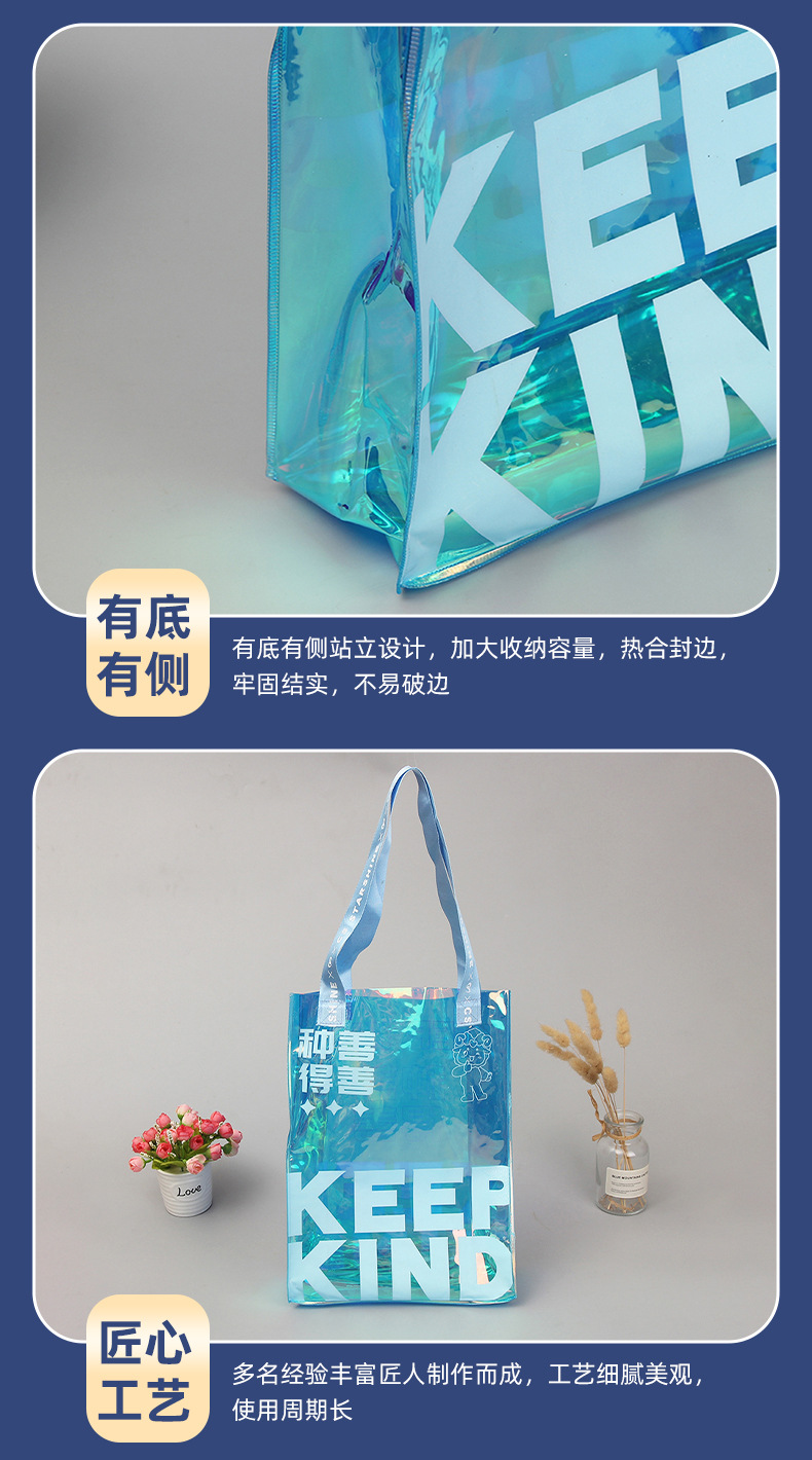 PVC 레이저 토트 백 광고 슈퍼마켓 쇼핑백 대용량 화장품 포장 백 인쇄 가능한 로고