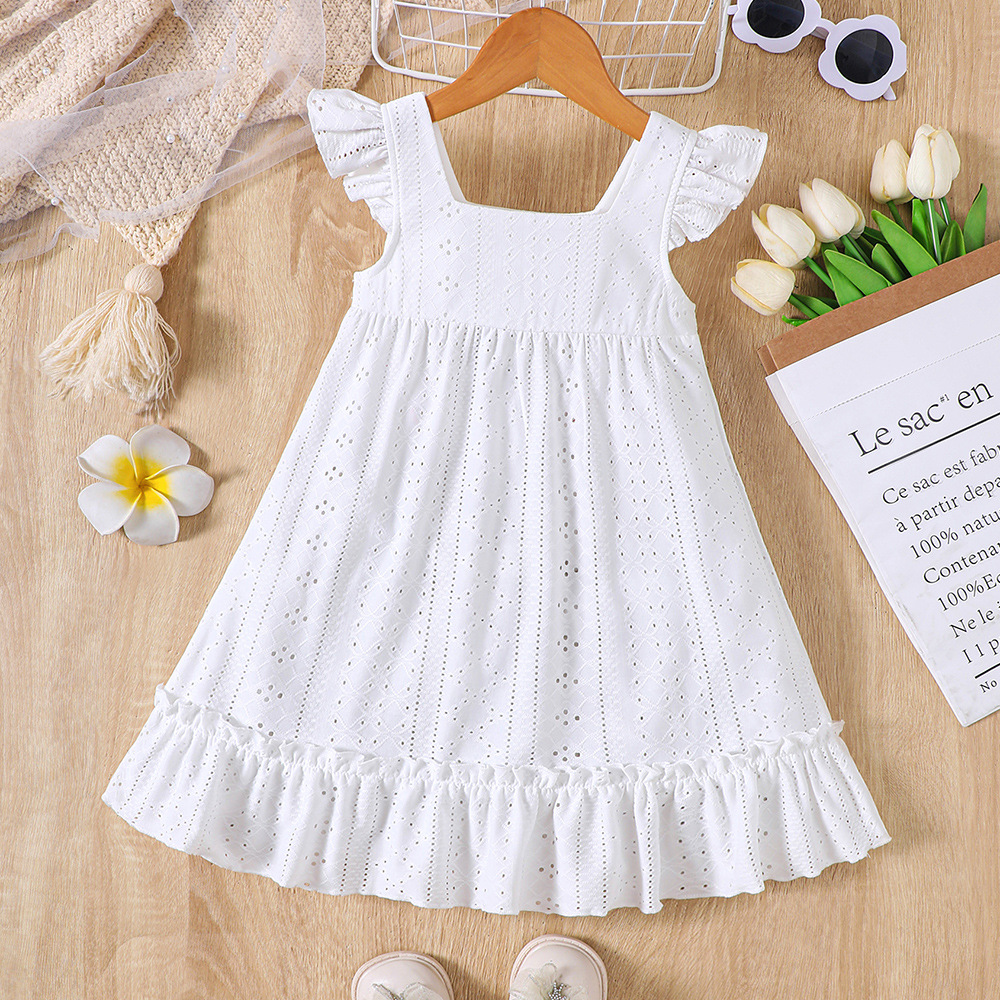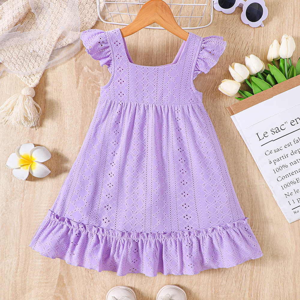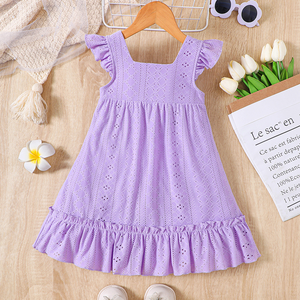 EW 대외 무역 아동복 중소 어린이 새 소녀 여름 작은 파리 소매 중공 단색 원피스 Q1819-C