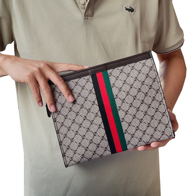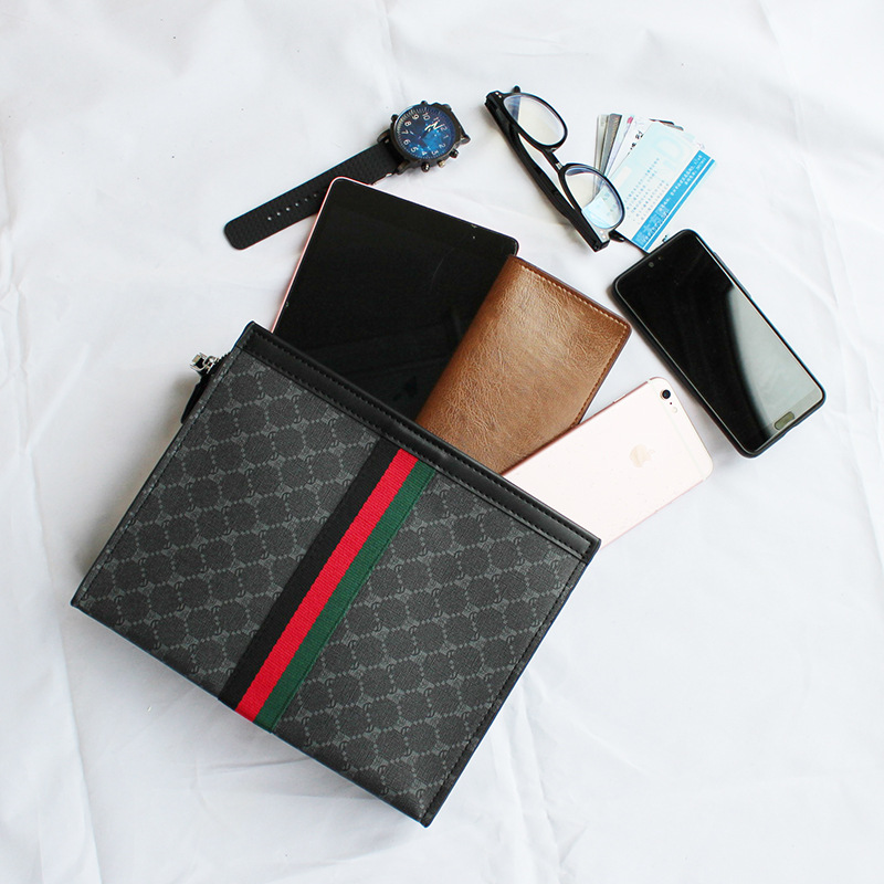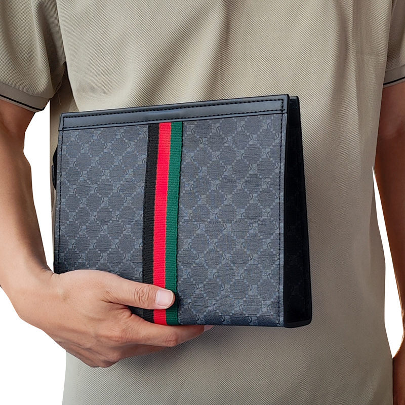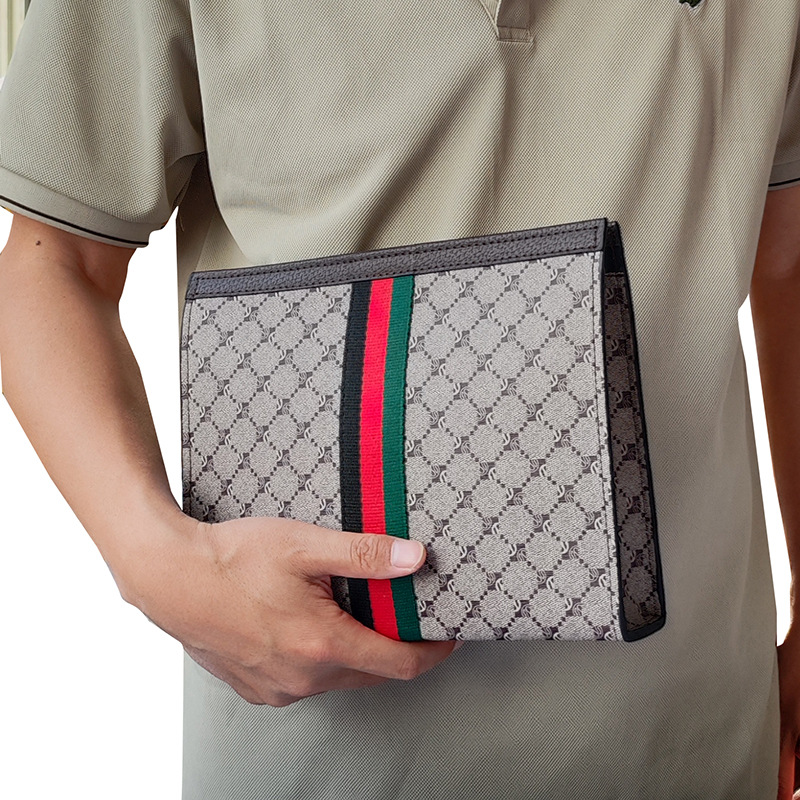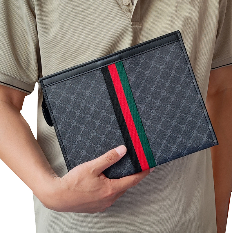 스트라이프 크로스 바디 백 하드 가죽 클러치 백 남자 가방 2024 새로운 클램프 백 남자 긴 지갑 여자를위한 대용량스토어 가기