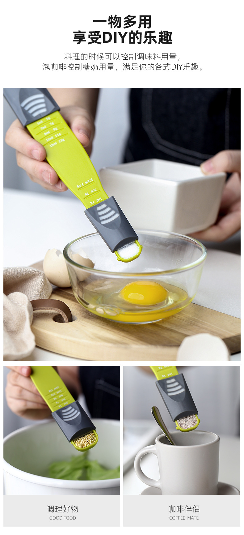 스케일 게이지 CNC 소금 우유 분말 스푼 측정 스케일 스푼 베이킹 도구로 주방 가정용 조절 가능한 측정 스푼