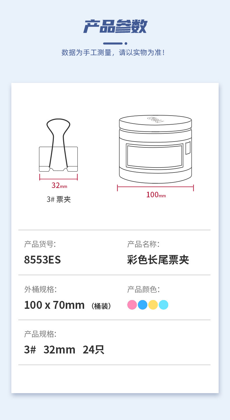 델리 롱 테일 클립 8554ES 컬러 티켓 클립 도브 테일 클립 테스트 종이 파일 티켓 클립 북 클립 도매 무료 배송스토어 가기