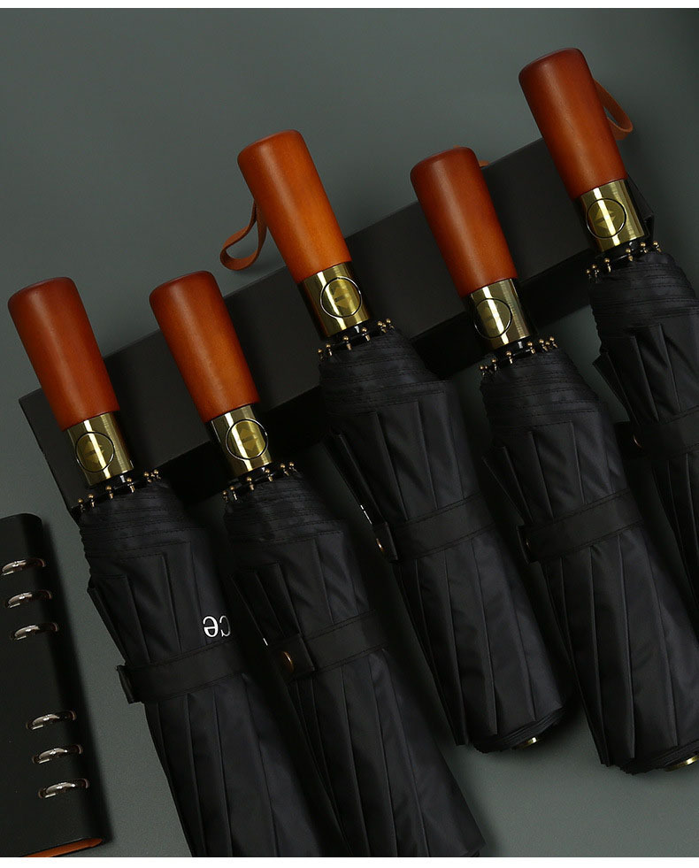 10 뼈 단단한 나무 손잡이 완전 자동 3 배 우산 4s 상점 자동차 로고 레트로 삼중 이중 용도 자외선 차단제 우산 재고스토어 가기