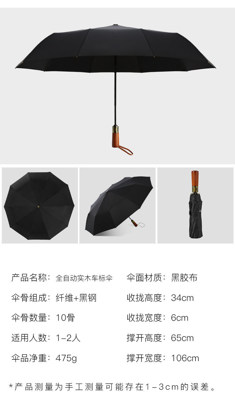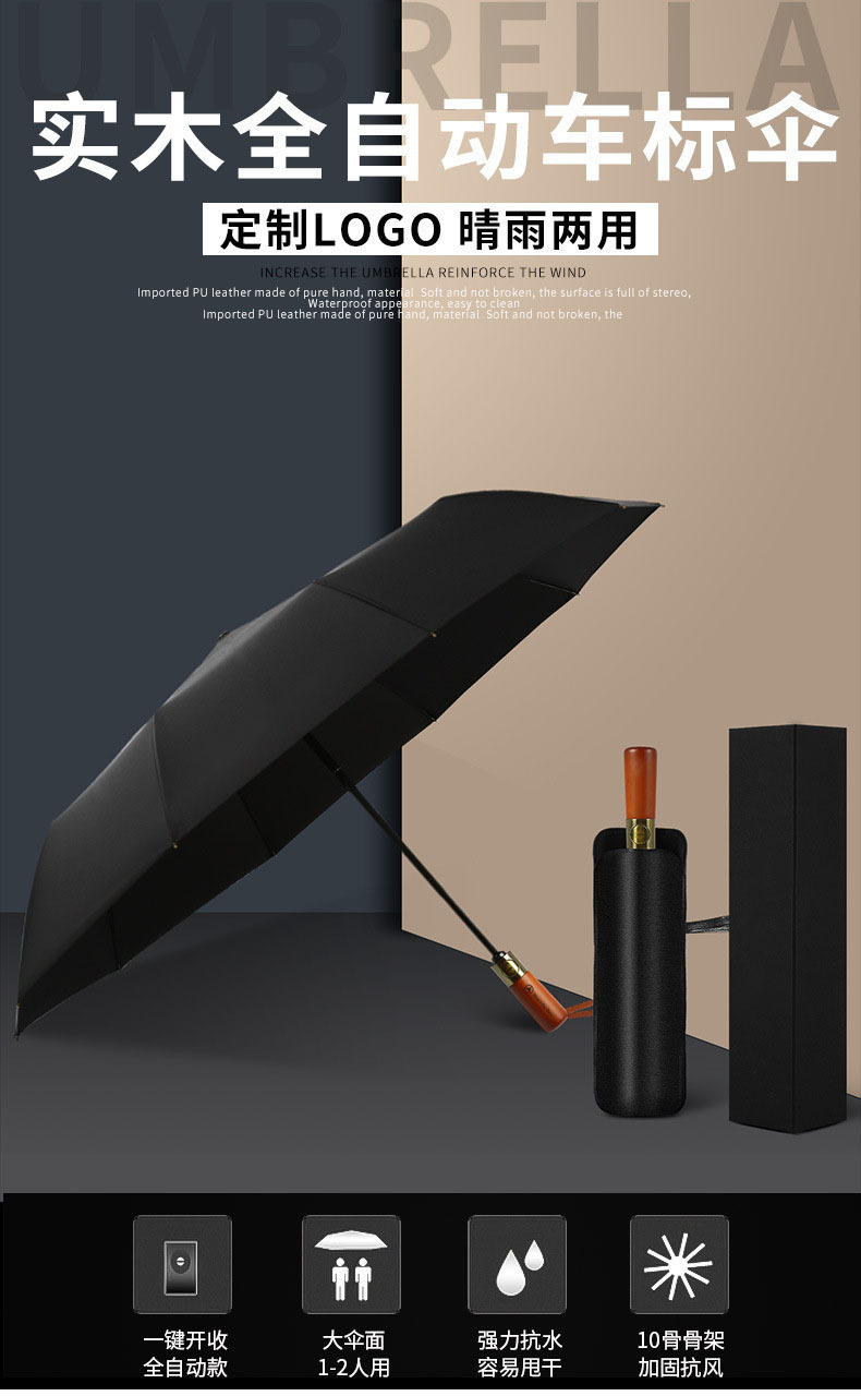 10 뼈 단단한 나무 손잡이 완전 자동 3 배 우산 4s 상점 자동차 로고 레트로 삼중 이중 용도 자외선 차단제 우산 재고