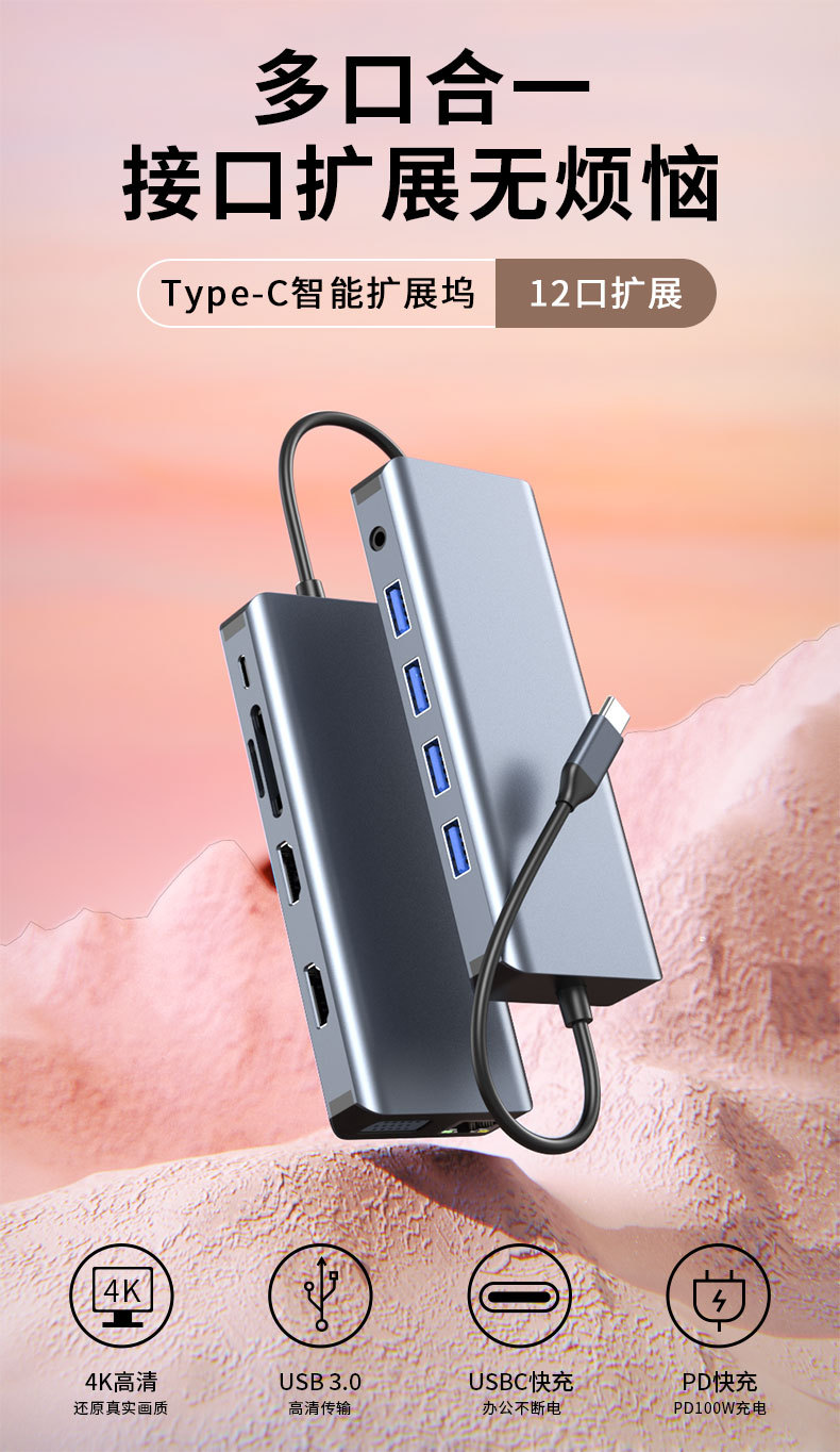 타입-c 도킹 스테이션 12 in 1 USB3.1 HDMIVGAUSB 멀티 인터페이스 4K HD 컨버터 네트워크 포트스토어 가기