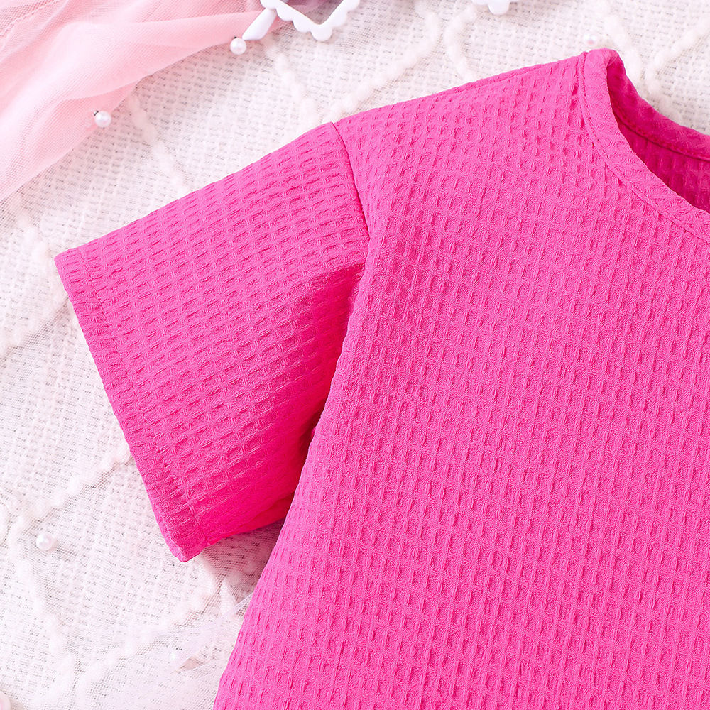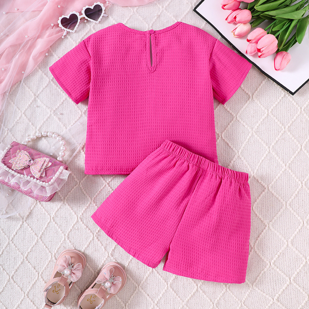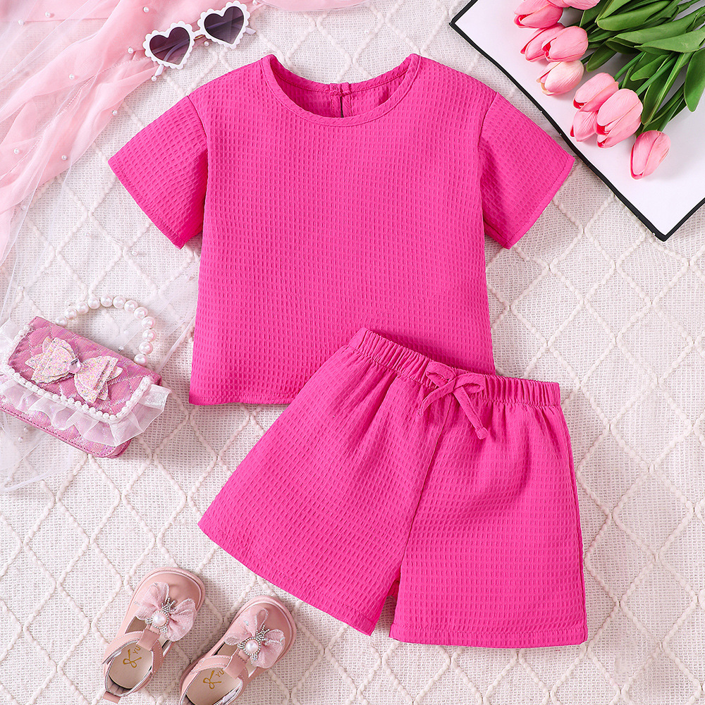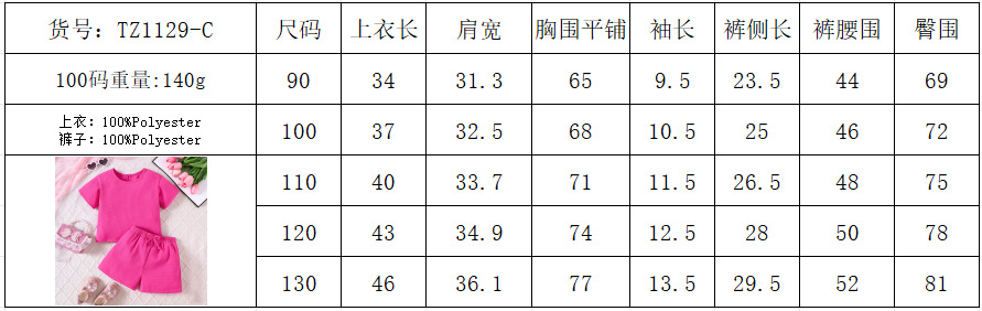 EW 외국 무역 아동복 유아 여아 여름용 단색 와플 티셔츠 반바지 투피스 세트 TZ1129-C
