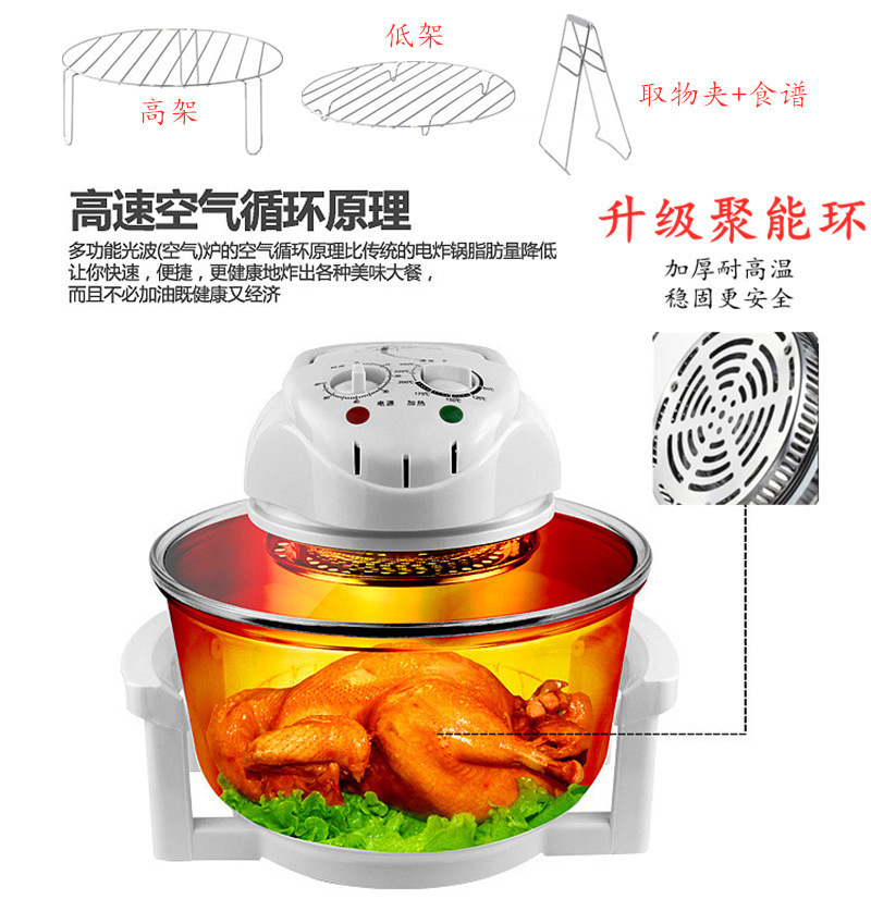 12L 라이트 웨이브 오븐 유리 에어 프라이어 로스트 치킨 프라이 뜨거운 공기 순환 에어 오븐 국경 도매스토어 가기