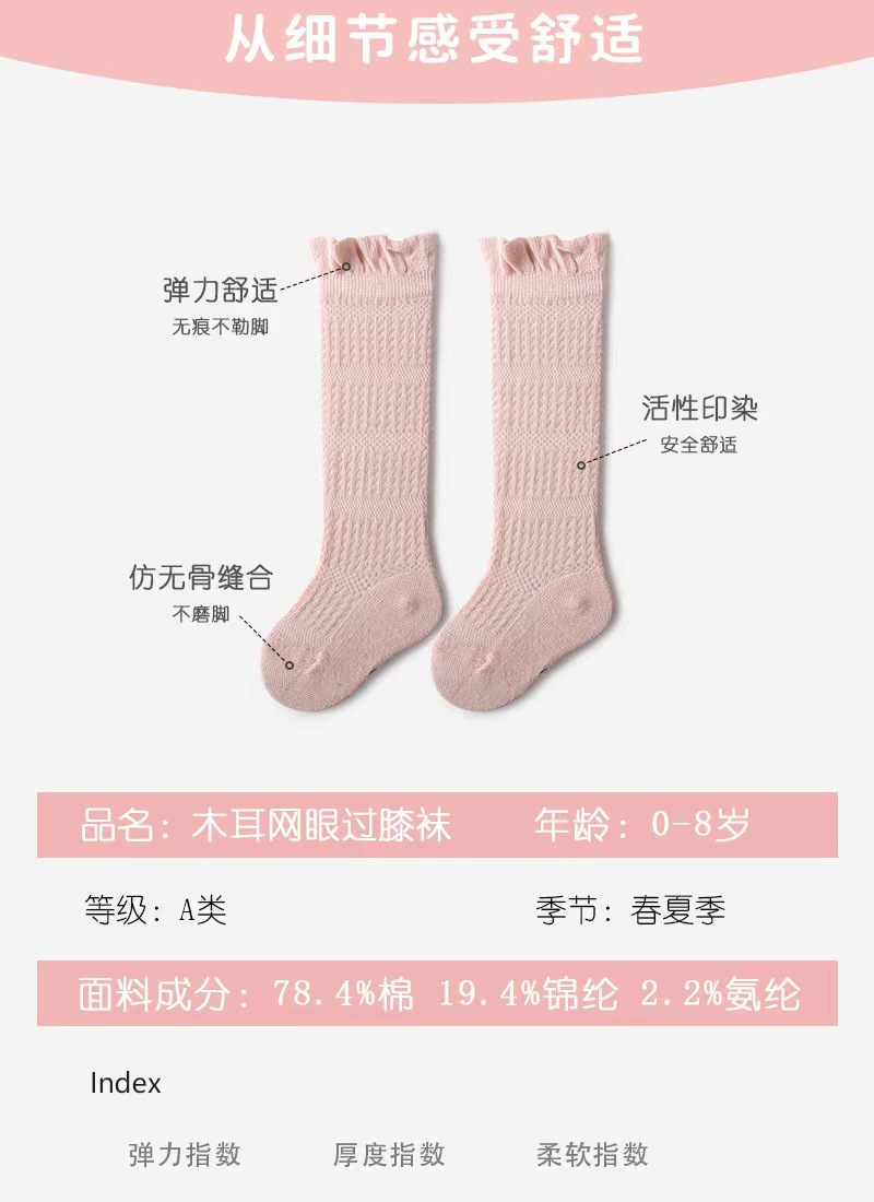 아기 모기 양말 여름 메쉬 아기 높은면 양말 나무 귀 느슨한 초박형 스타킹 도매스토어 가기
