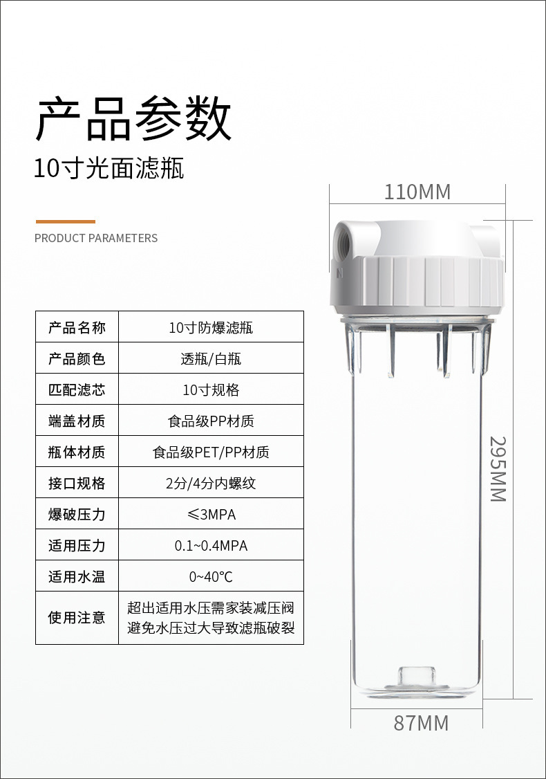 공장 도매 10 인치 20 인치 지방 필터 병 전체 집 앞 큰 흐름 정수기 폭발 방지 병 필터 병