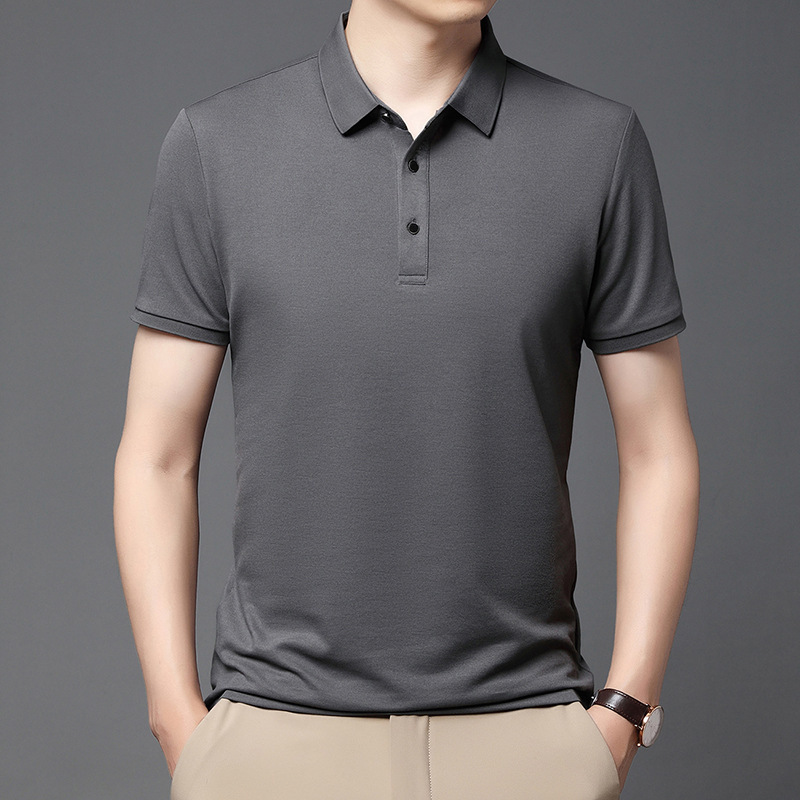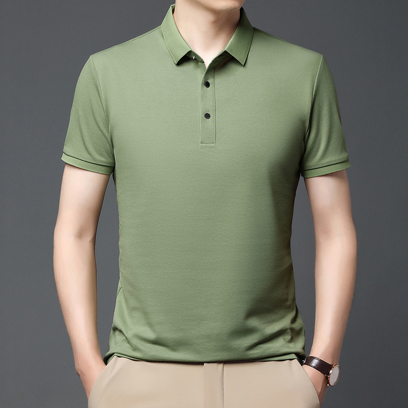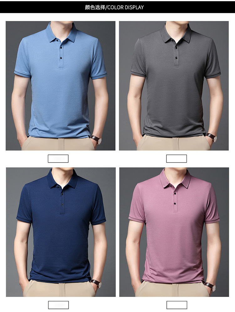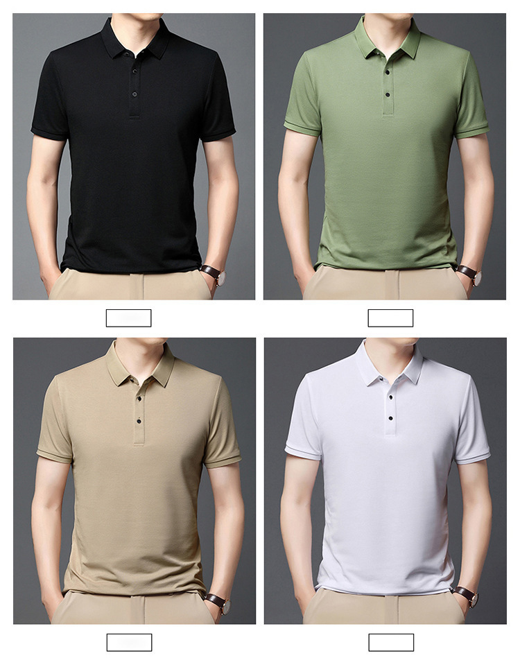 티셔츠 남성용 신형 반팔 티셔츠 남성용 폴로 셔츠 단색베이스 셔츠 반소매 뽕나무 실크 탑 티셔츠