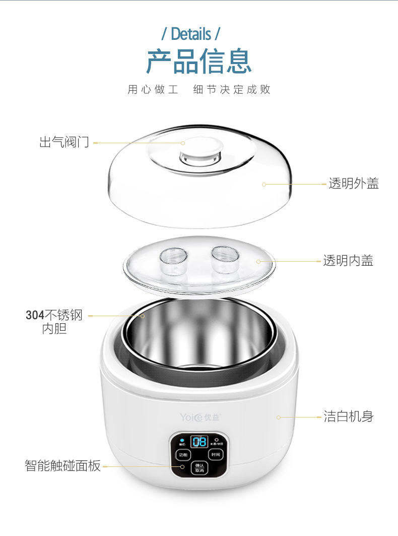 유이 요구르트 제조기 가정용 소형 자동 발효기 스테인리스 내부 용기 수제 쌀주류 낫토 제조기 식품 등급