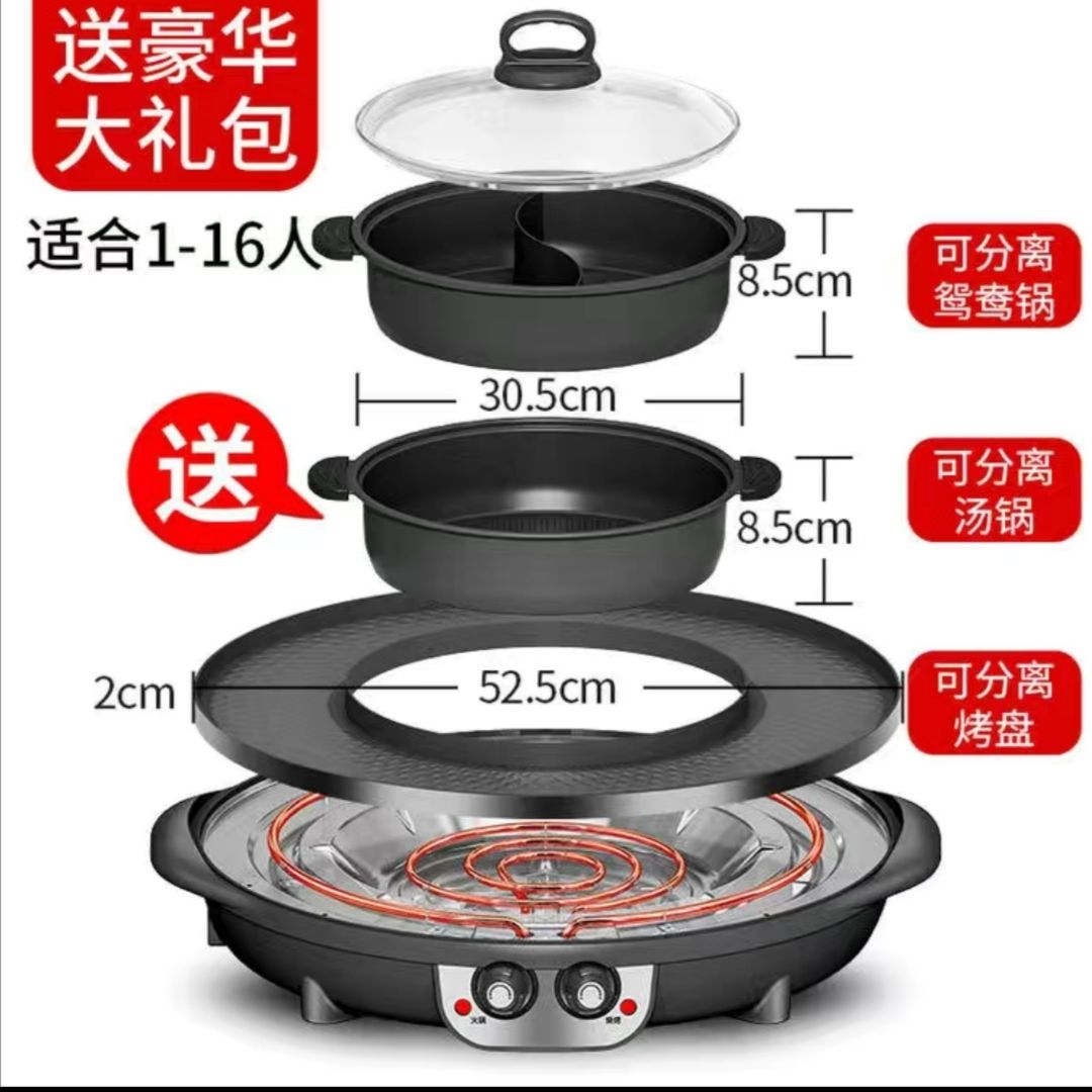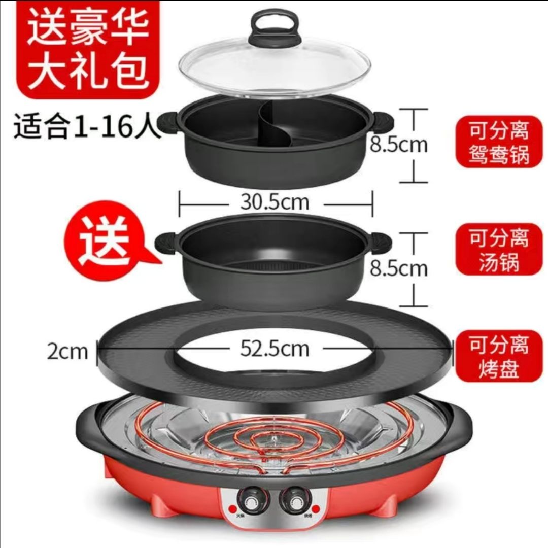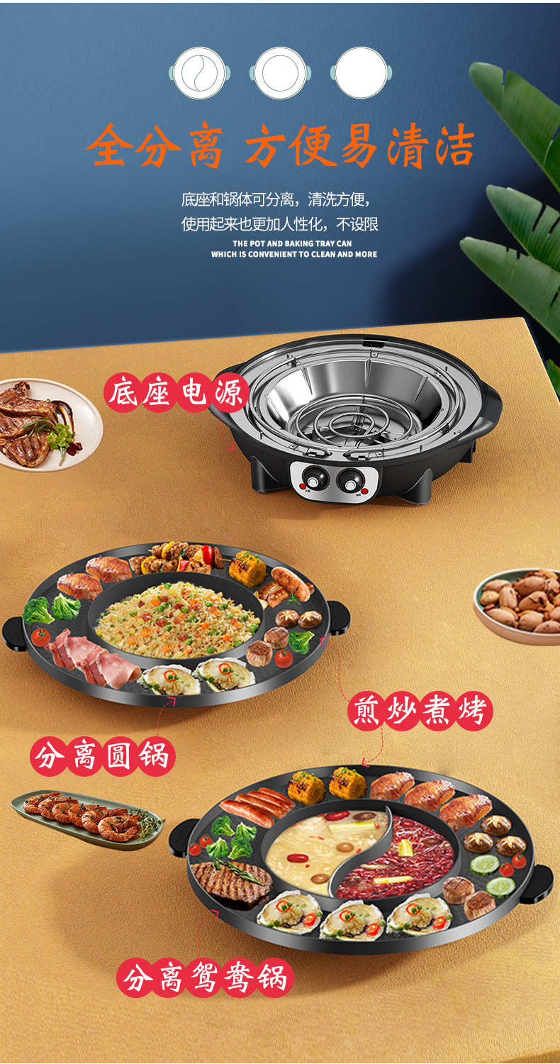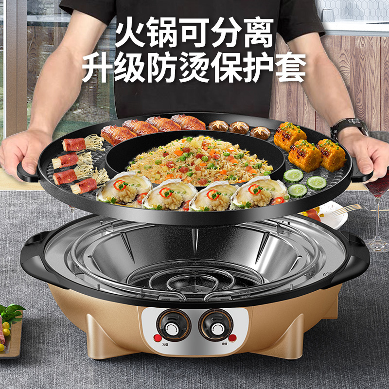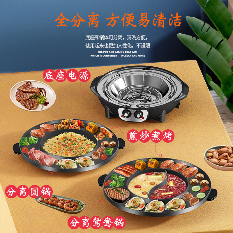 핫팟 바베큐 통합 냄비 가정용 한국식 바베큐 기계 다기능 냄비 튀김 및 구이 분리 가능한 전기 베이킹 플레이트 린스 베이킹 오븐스토어 가기