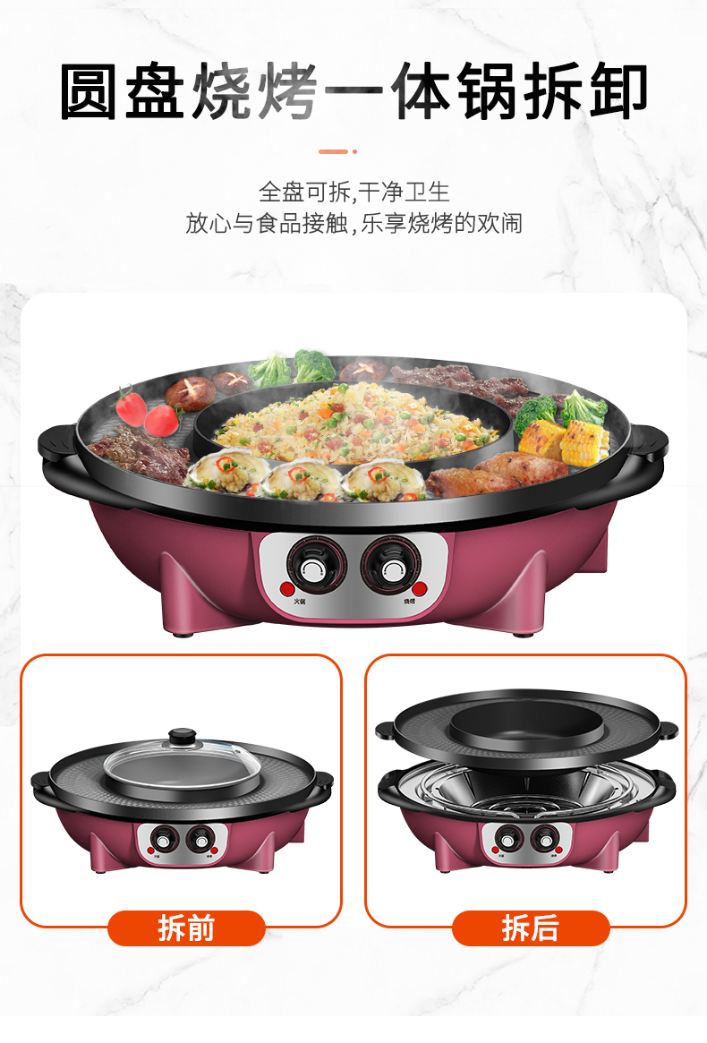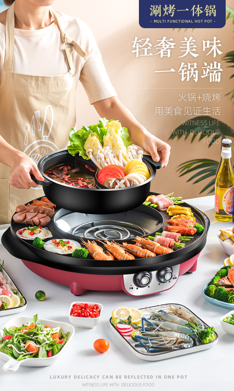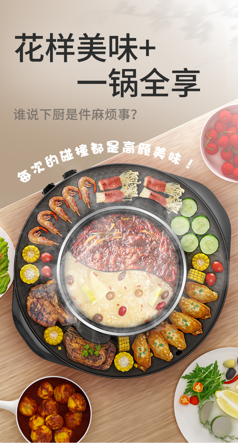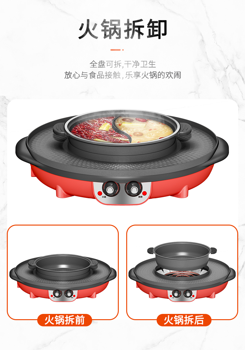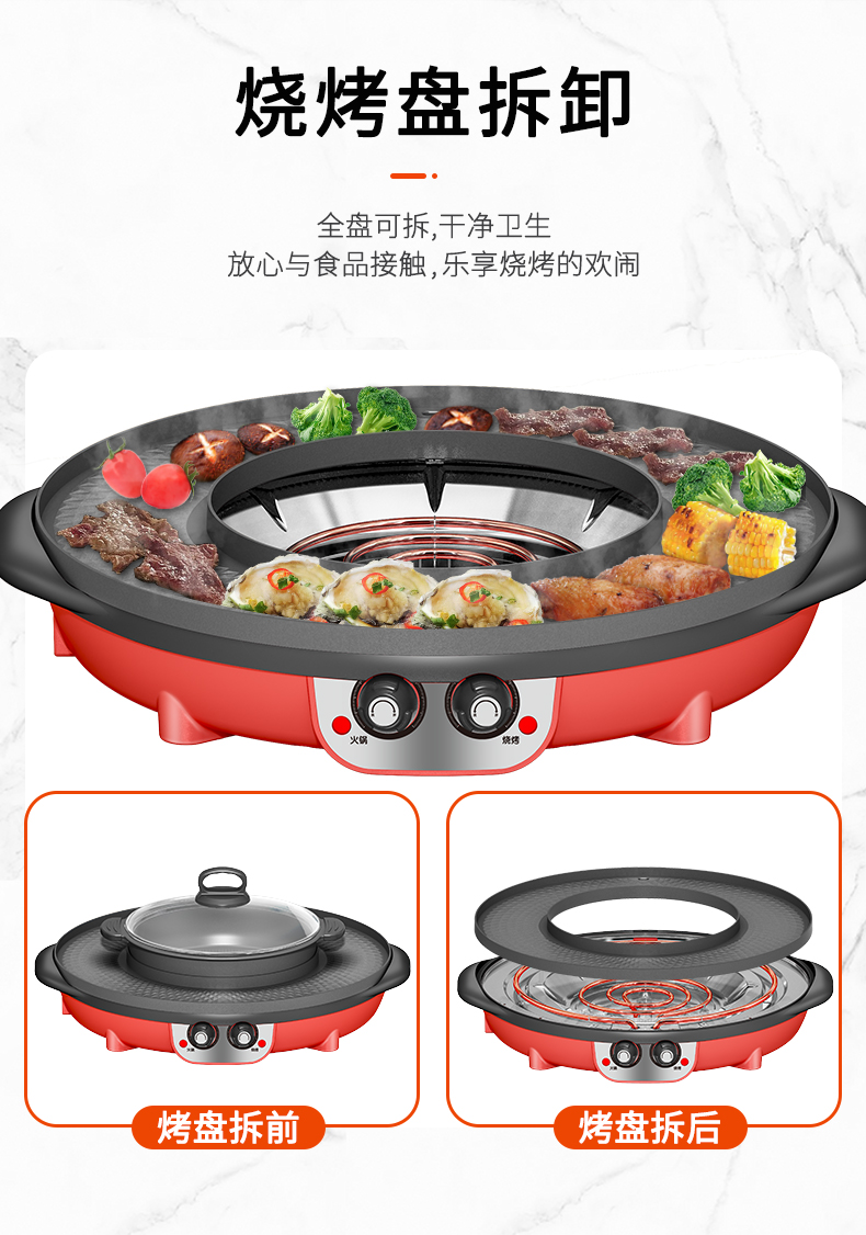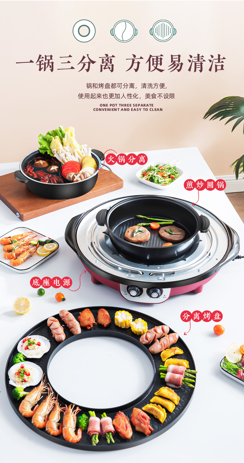 핫팟 바베큐 통합 냄비 가정용 한국식 바베큐 기계 다기능 냄비 튀김 및 구이 분리 가능한 전기 베이킹 플레이트 린스 베이킹 오븐스토어 가기