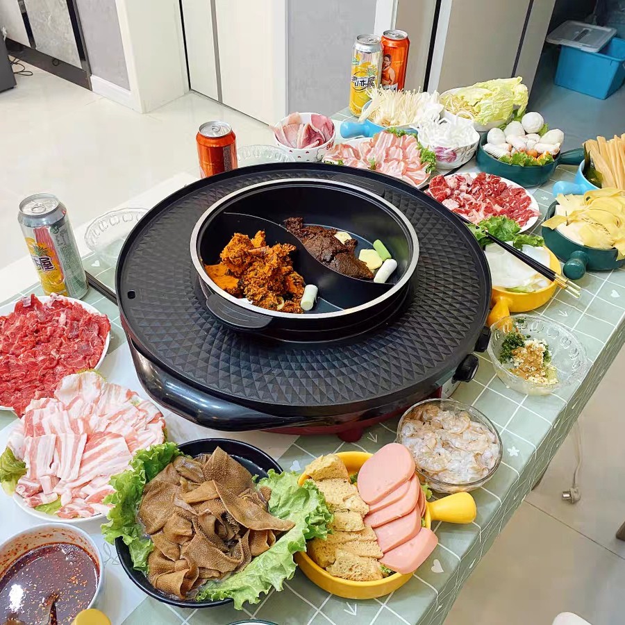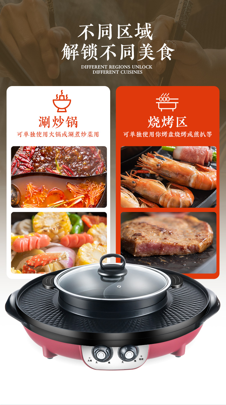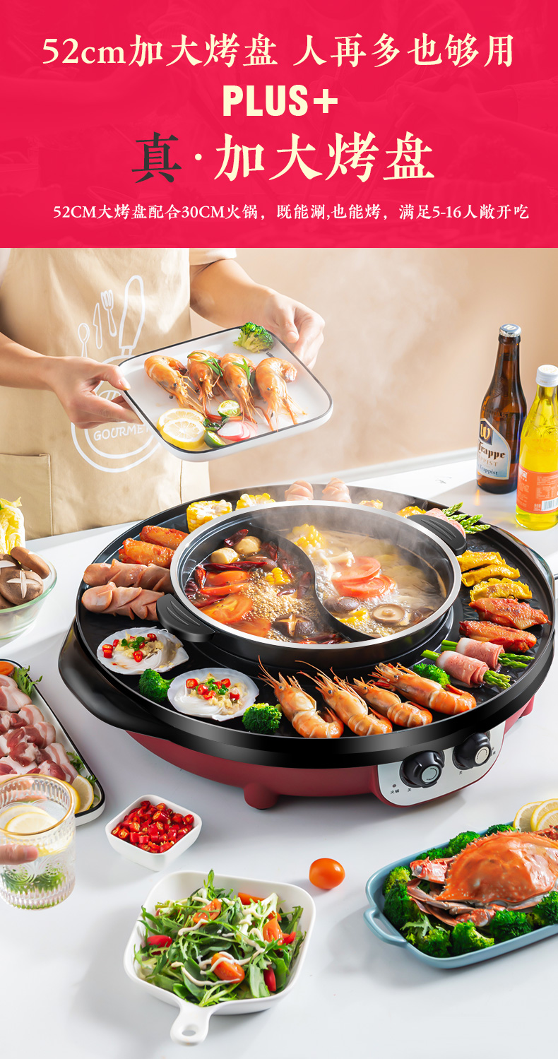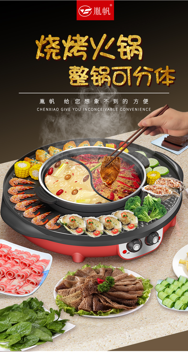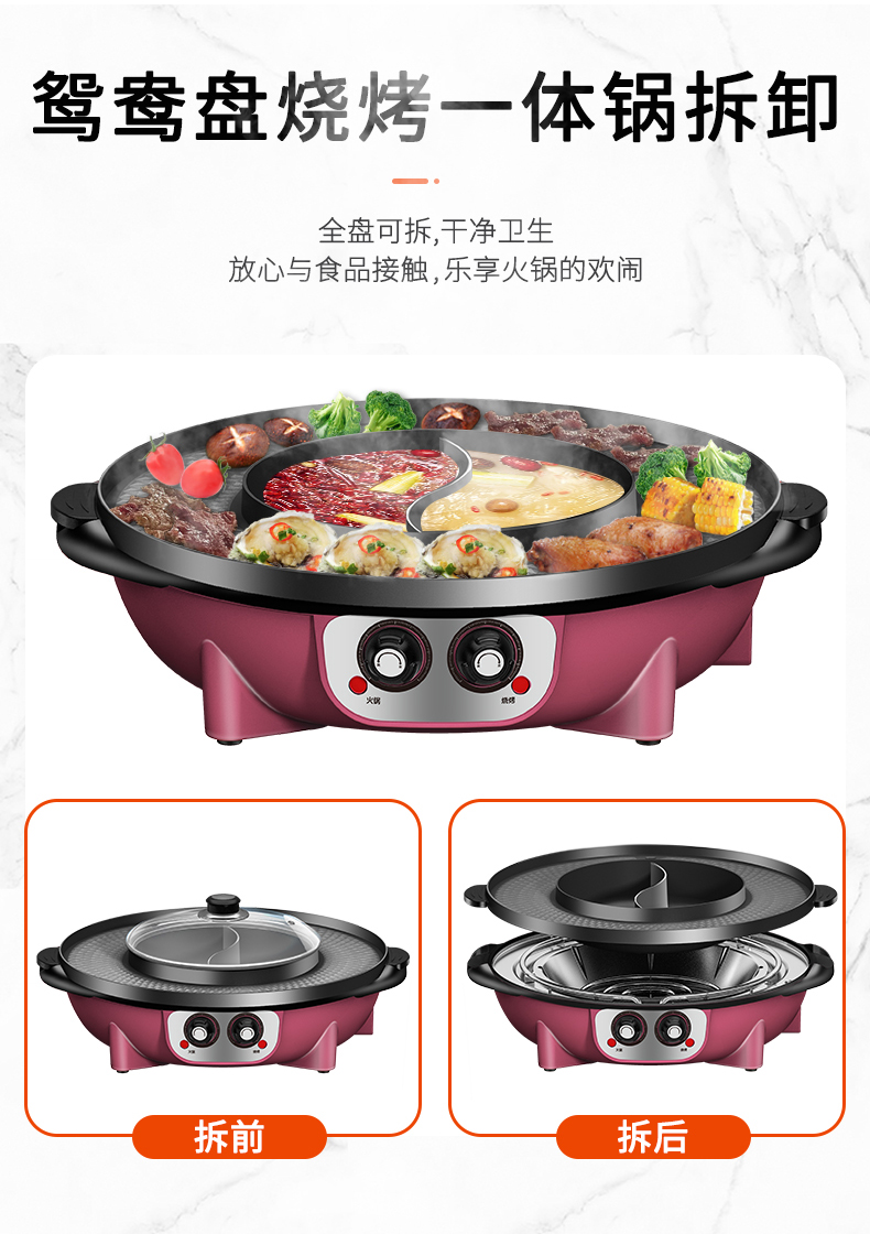 핫팟 바베큐 통합 냄비 가정용 한국식 바베큐 기계 다기능 냄비 튀김 및 구이 분리 가능한 전기 베이킹 플레이트 린스 베이킹 오븐스토어 가기