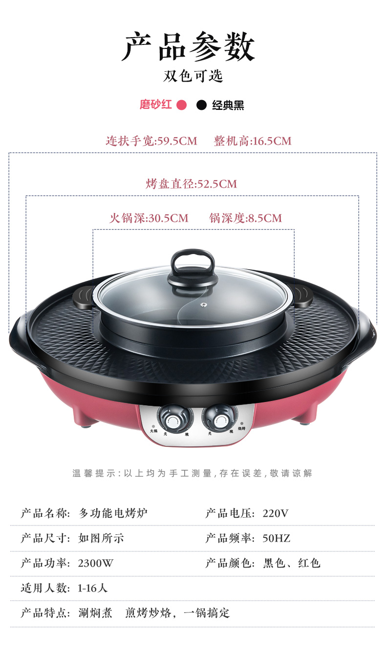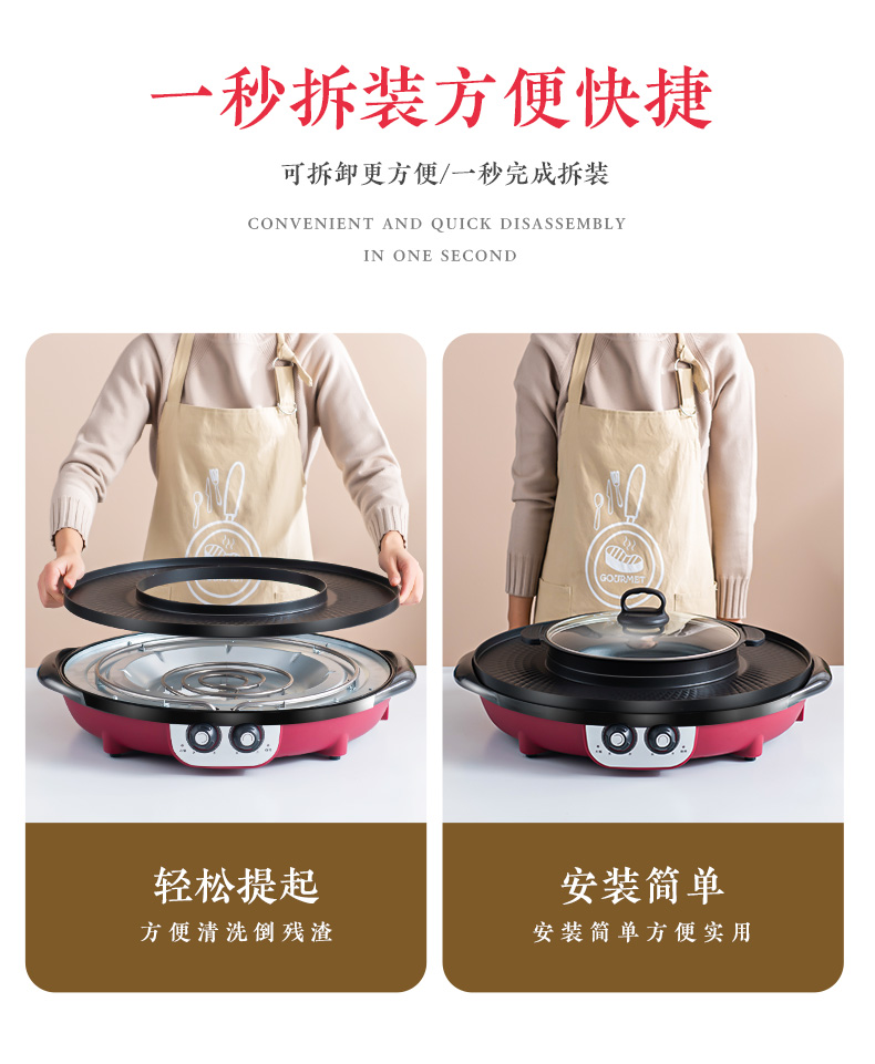 핫팟 바베큐 통합 냄비 가정용 한국식 바베큐 기계 다기능 냄비 튀김 및 구이 분리 가능한 전기 베이킹 플레이트 린스 베이킹 오븐