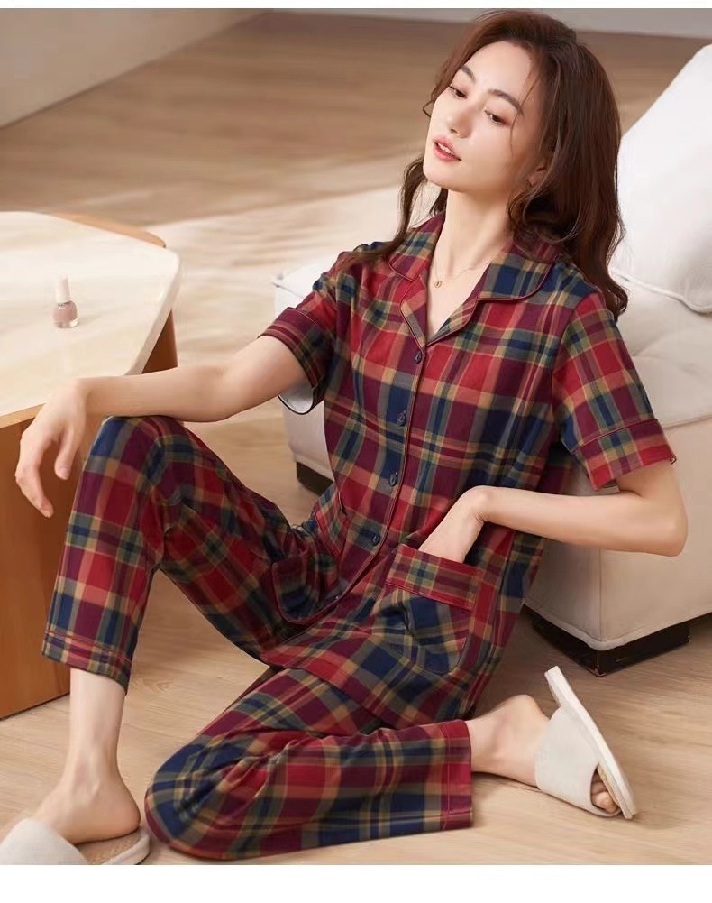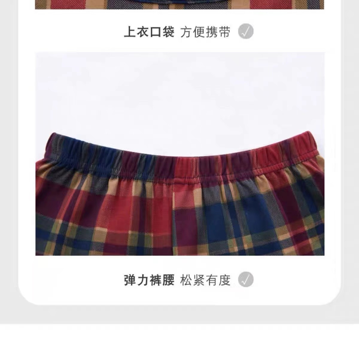 • 레드 체크 짧은 소매 세트