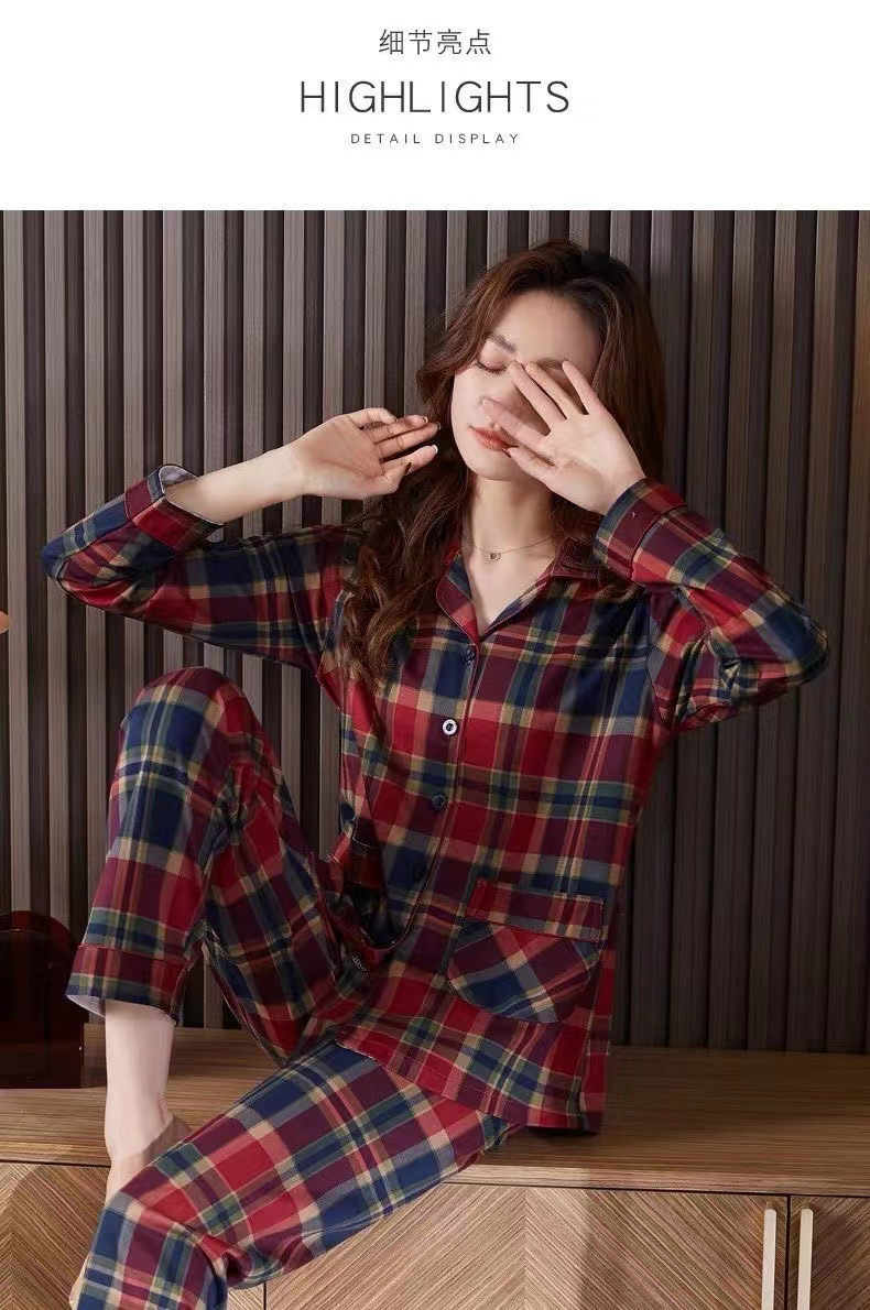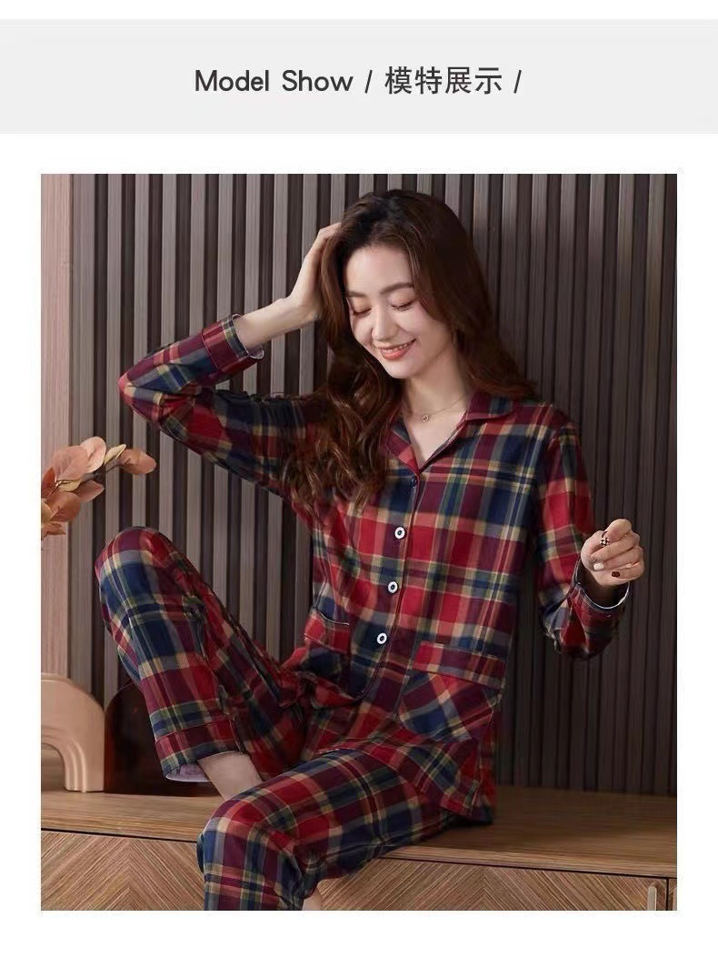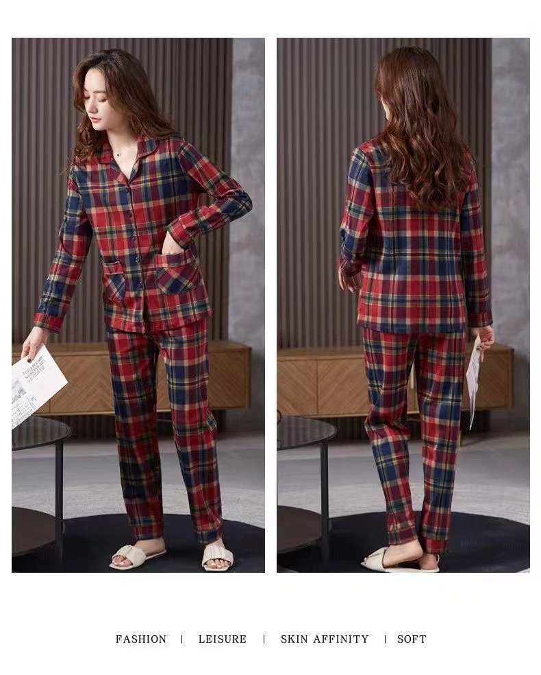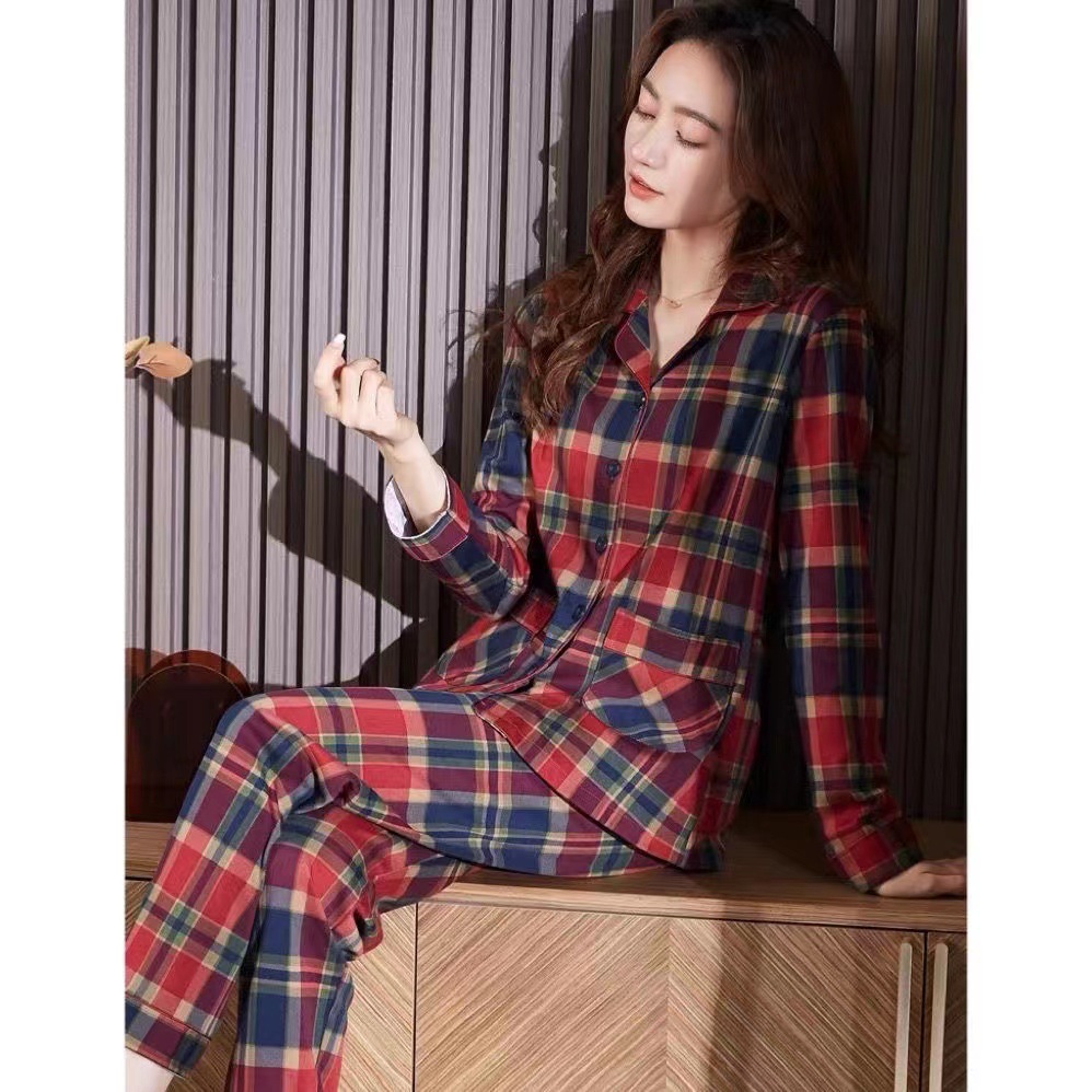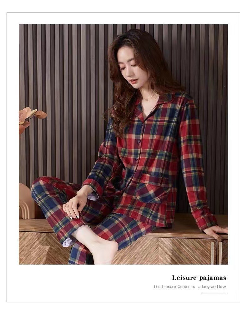 여성을위한 붉은 격자 무늬 잠옷 봄, 가을 모조 면화 긴팔 대형 카디건 옷깃은 여성용 홈웨어 슈트 외부에서 착용 가능스토어 가기