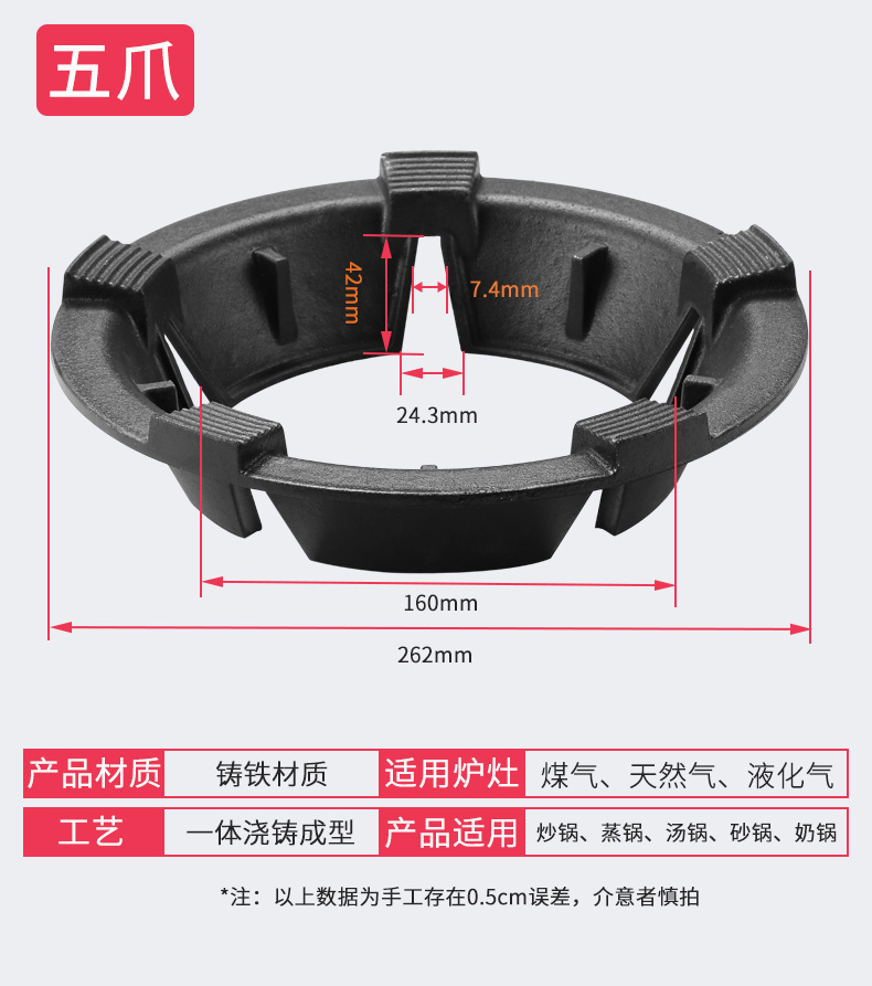 • 5구 유니버셜 + 밀크팟홀더 [불을 모으고 에너지 절약/방풍 및 미끄럼 방지]
