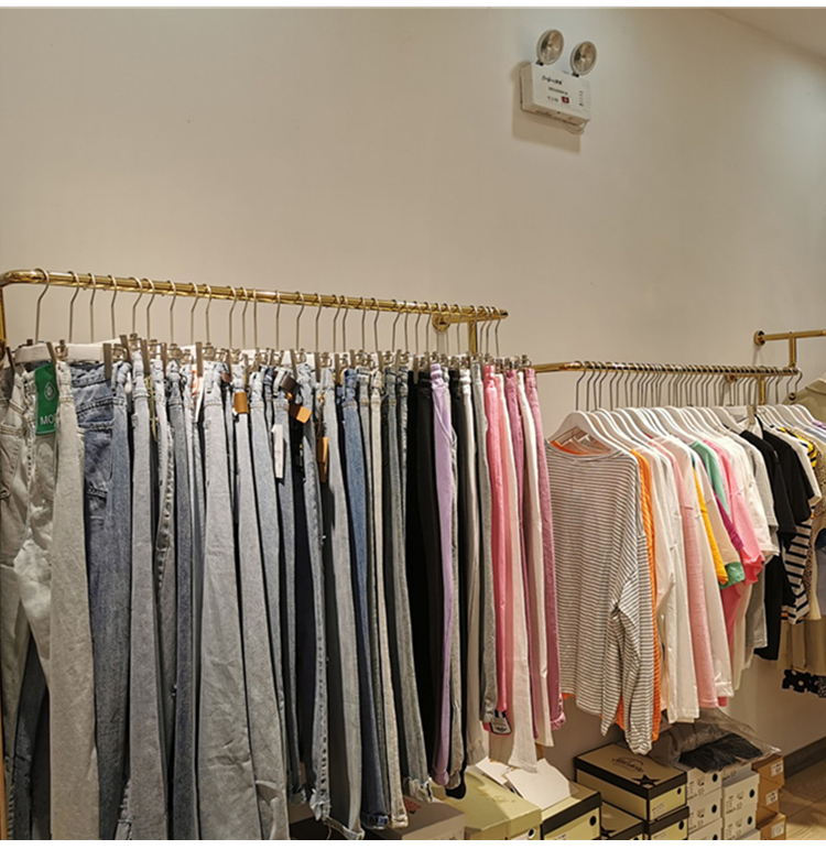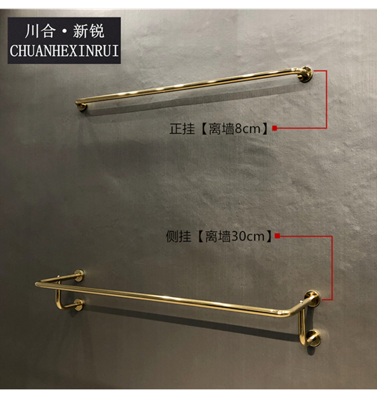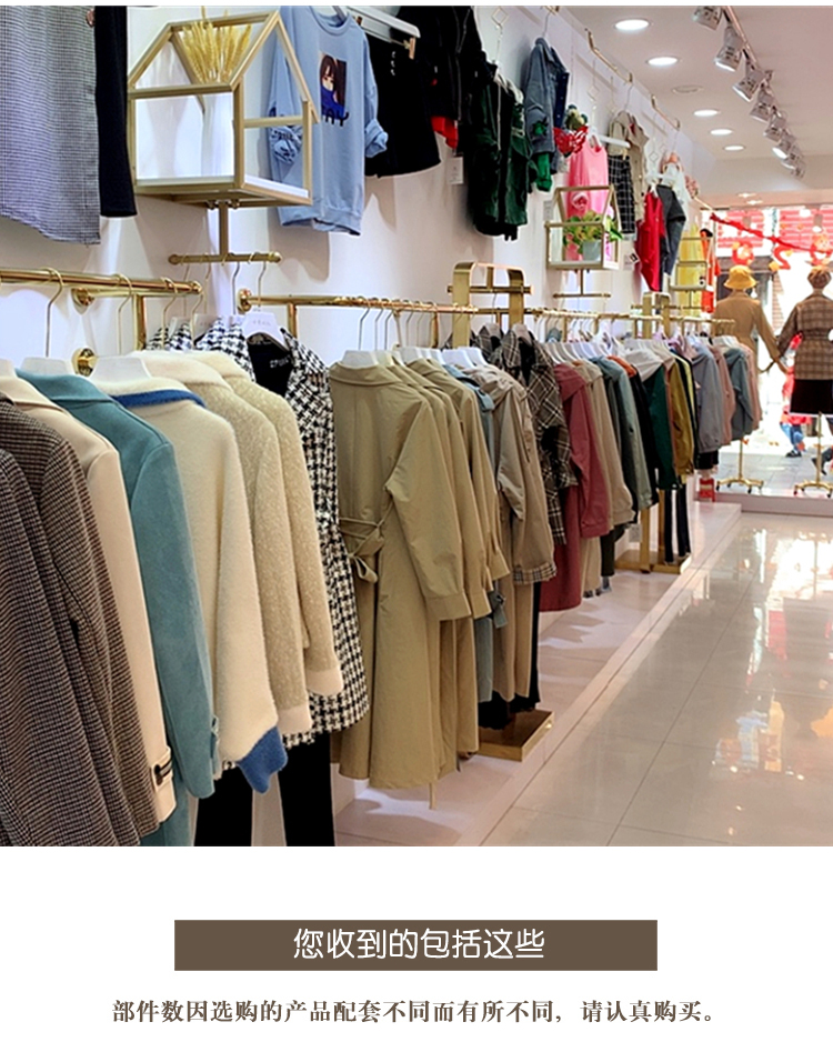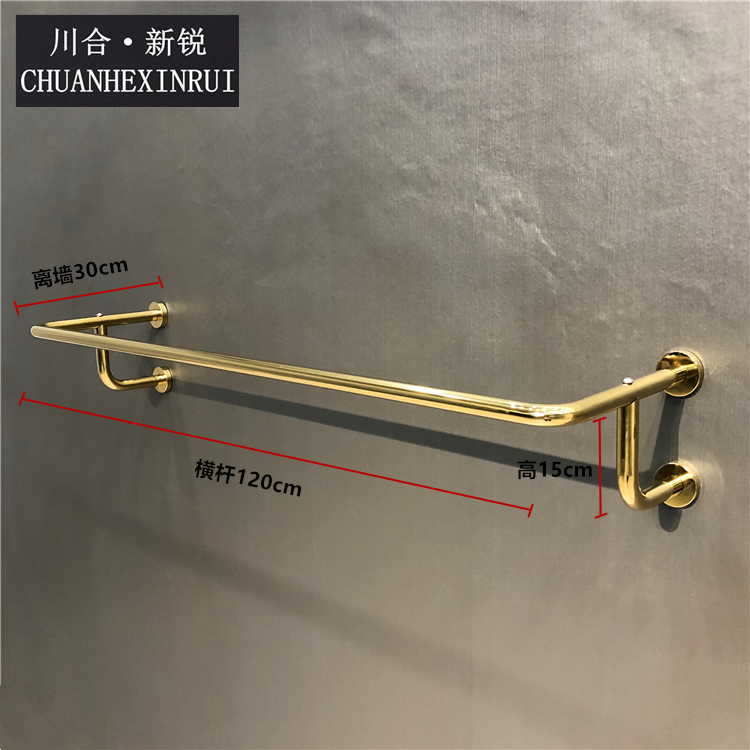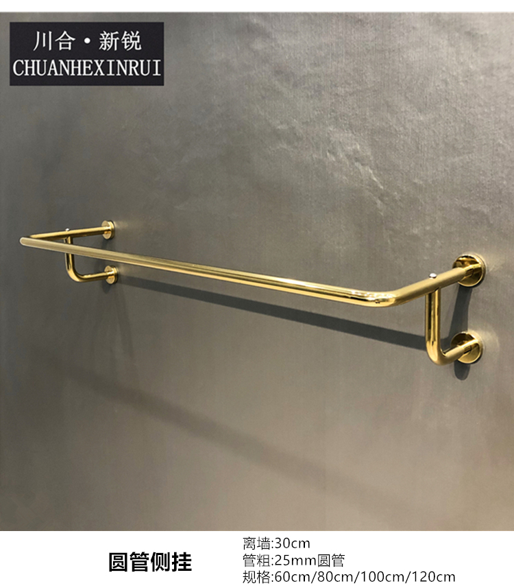 의류 매장 황금 교수형 벽 선반 디스플레이 랙 벽 매달려 노란색 티타늄 컬러 걸이 라운드 튜브 교수형 측면 교수형 랙스토어 가기