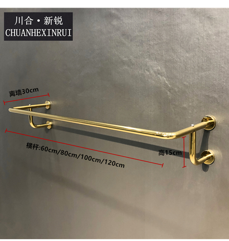의류 매장 황금 교수형 벽 선반 디스플레이 랙 벽 매달려 노란색 티타늄 컬러 걸이 라운드 튜브 교수형 측면 교수형 랙