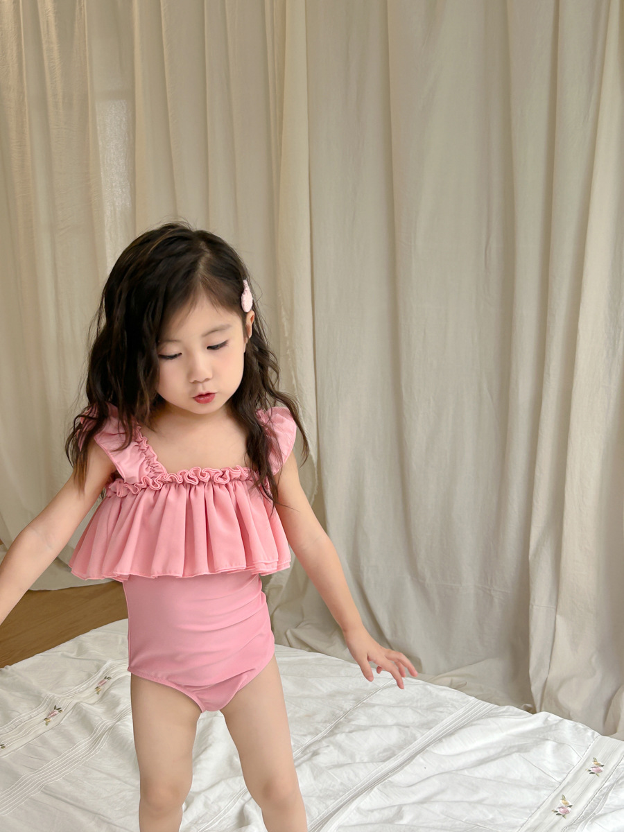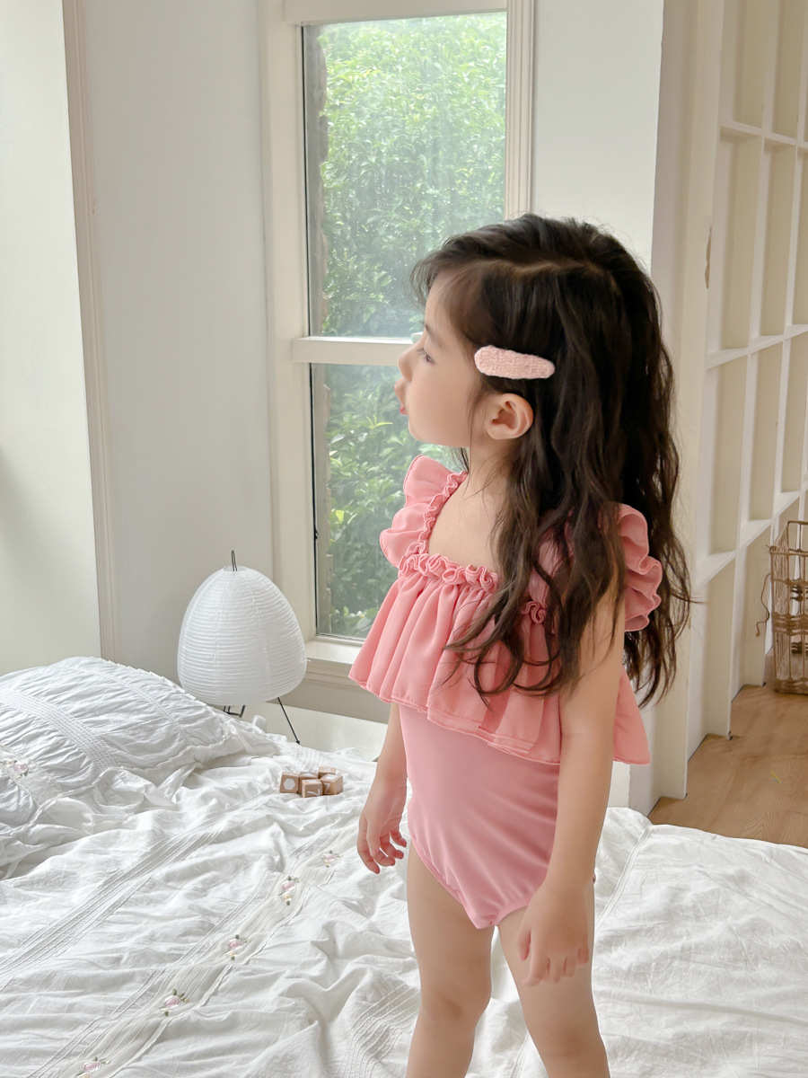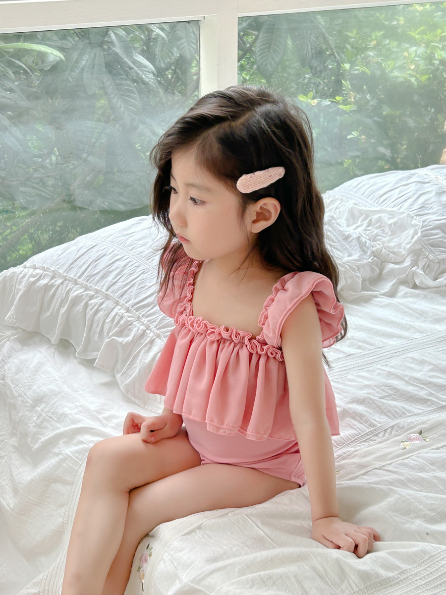 2024 년 여름 새로운 어린이 수영복 소녀 원피스 수영복 소녀 귀여운 원사 스커트 어린이 온천 수영복