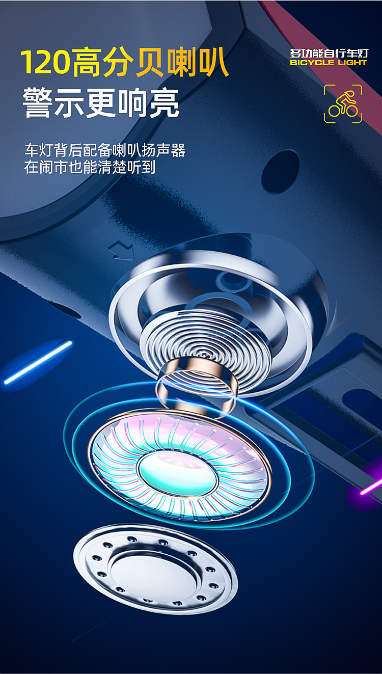 태양 산악 자전거 빛 강한 가벼운 밤 승마 벨 슈퍼 링 유니버설 고속도로 자전거 자전거 앞 경적