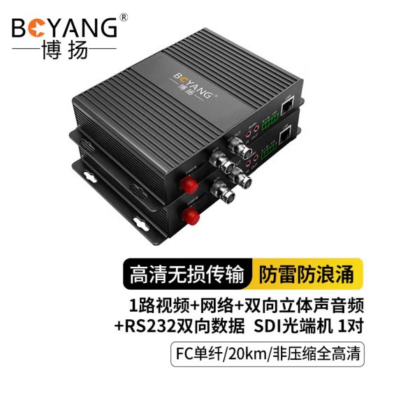 博扬(BOYANG)非压缩全高清3G-SDI视频光端机1路视频+网络+双向立体声音频+RS232双向数据一对 BY-3G1SEY