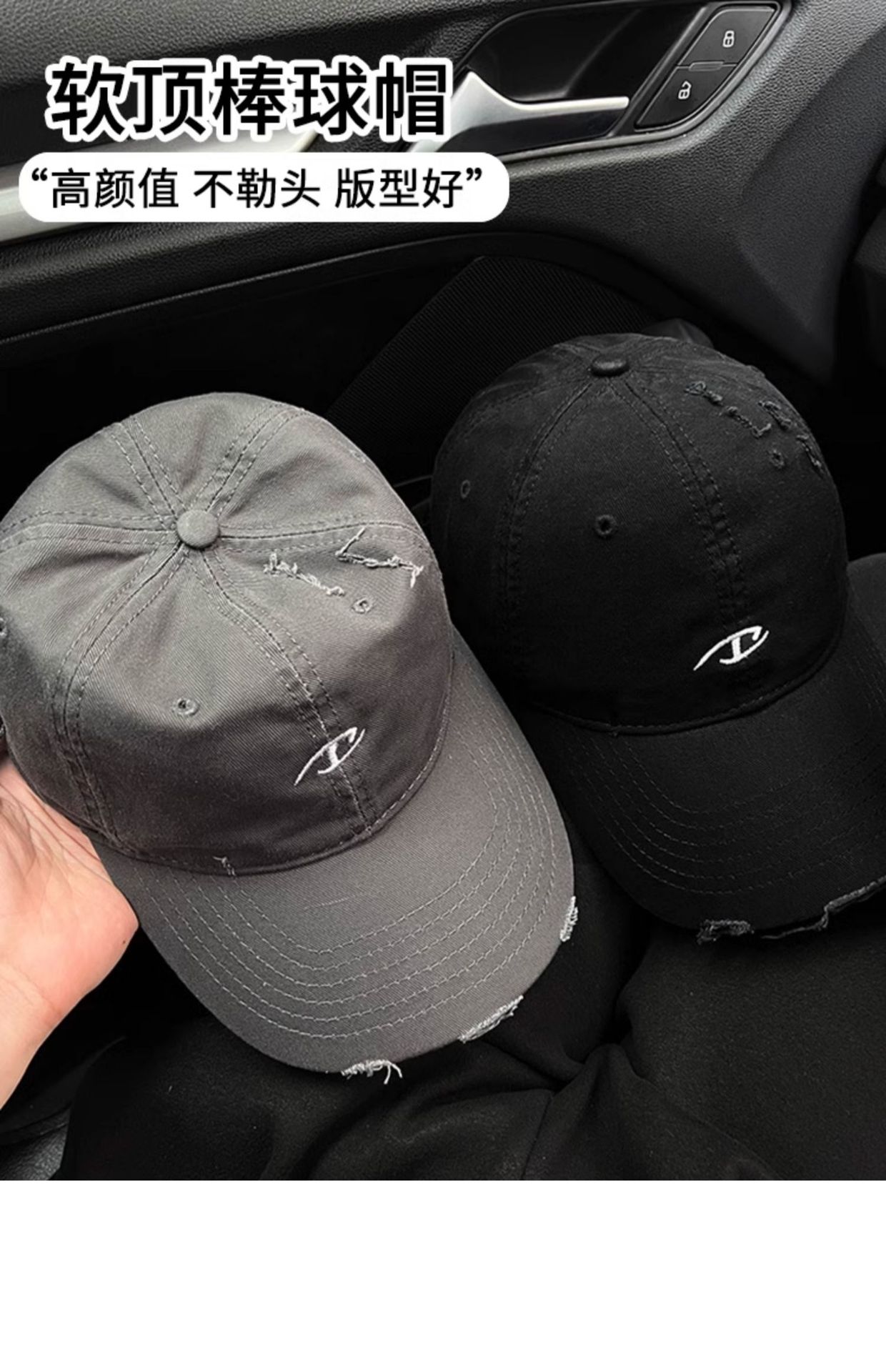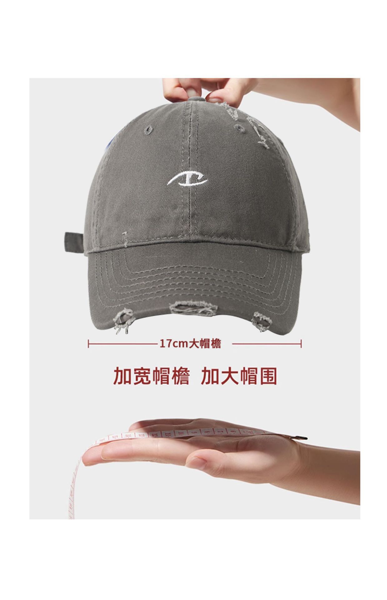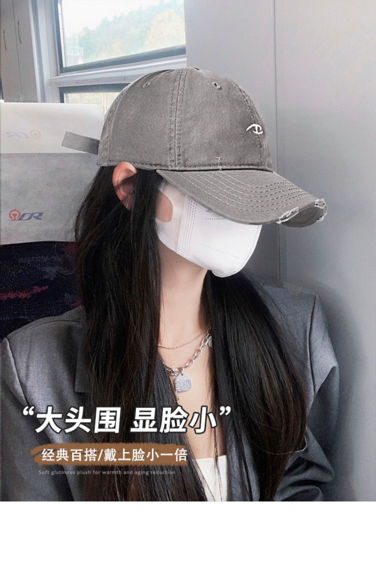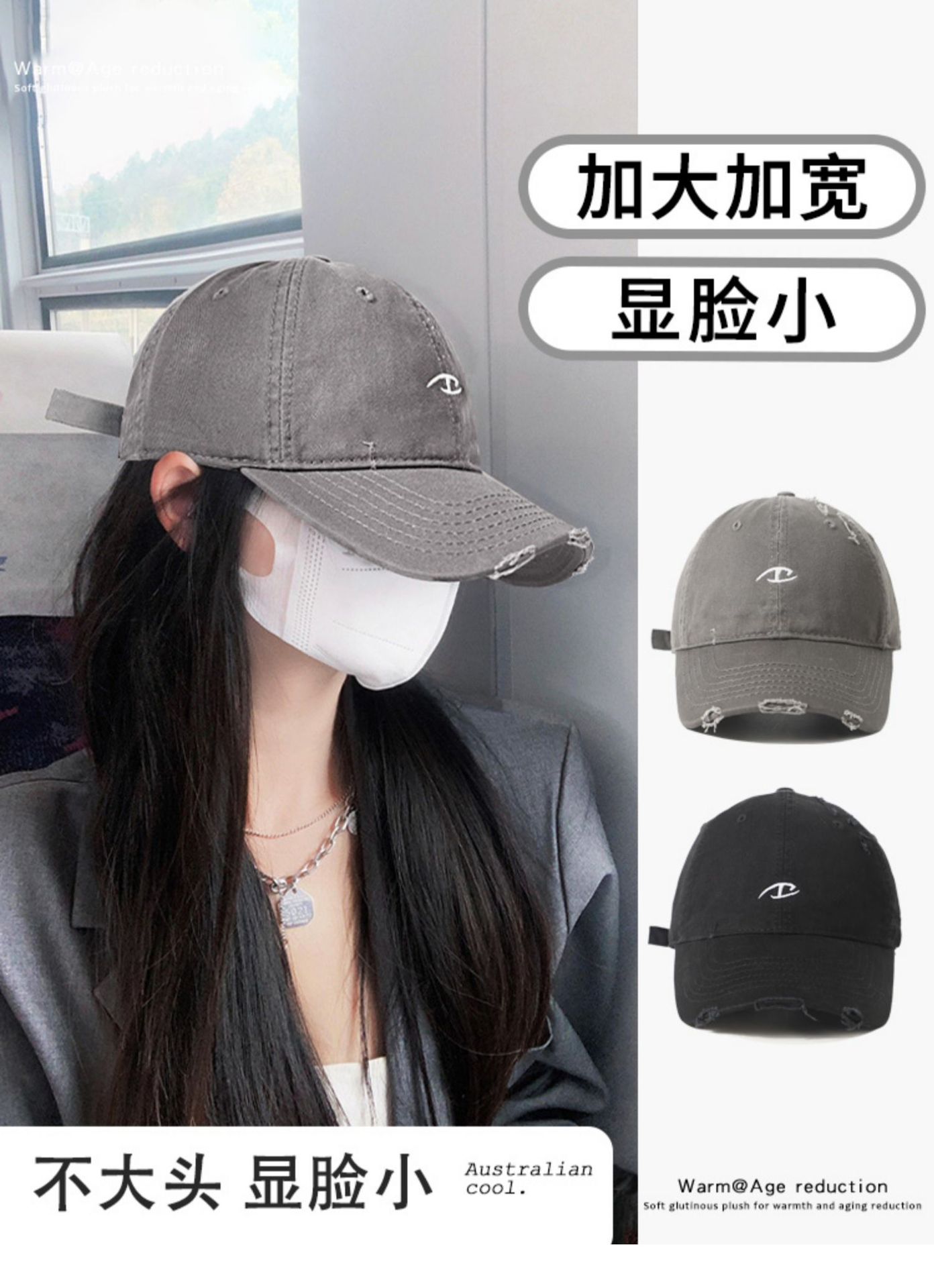 와이드 브림 야구 모자 여자 2024 새로운 한국 스타일 빅 헤드 와이 홀 드레스 올드 모자 얼굴 작은 회색 모자스토어 가기
