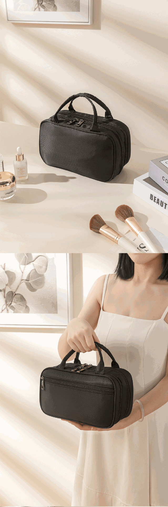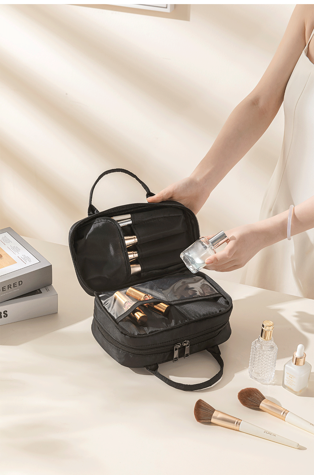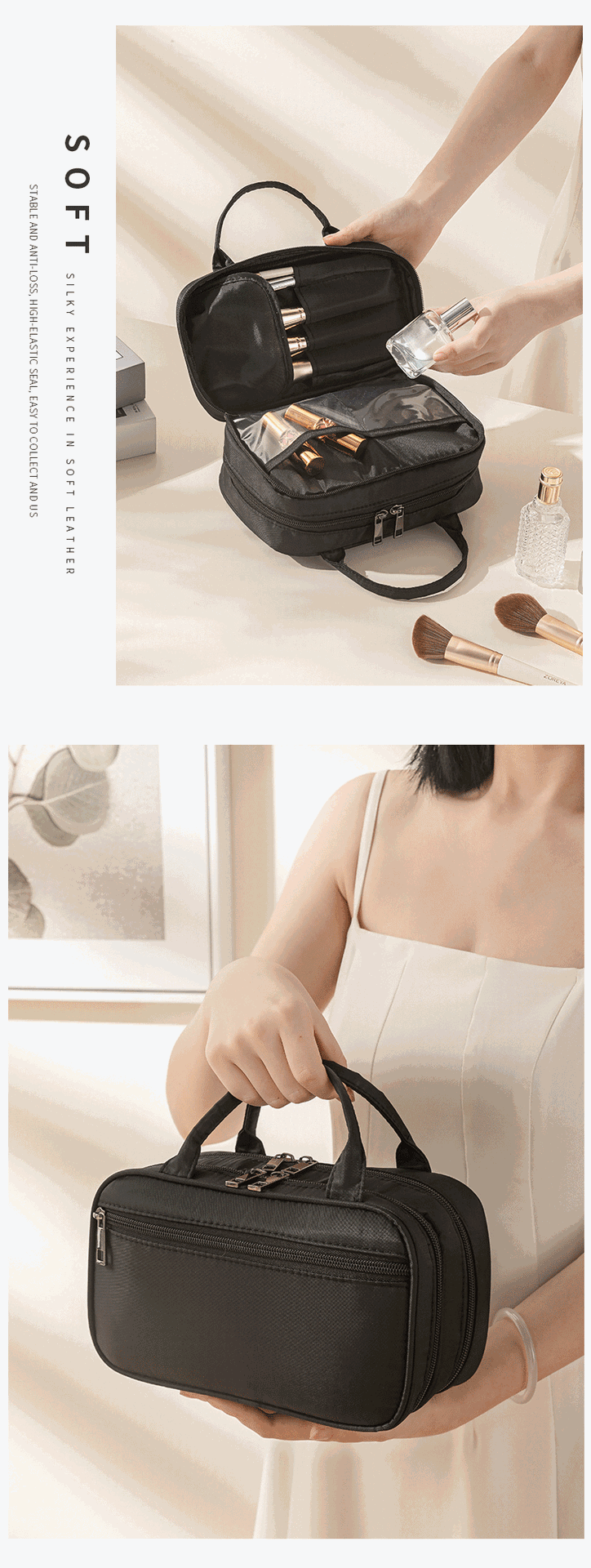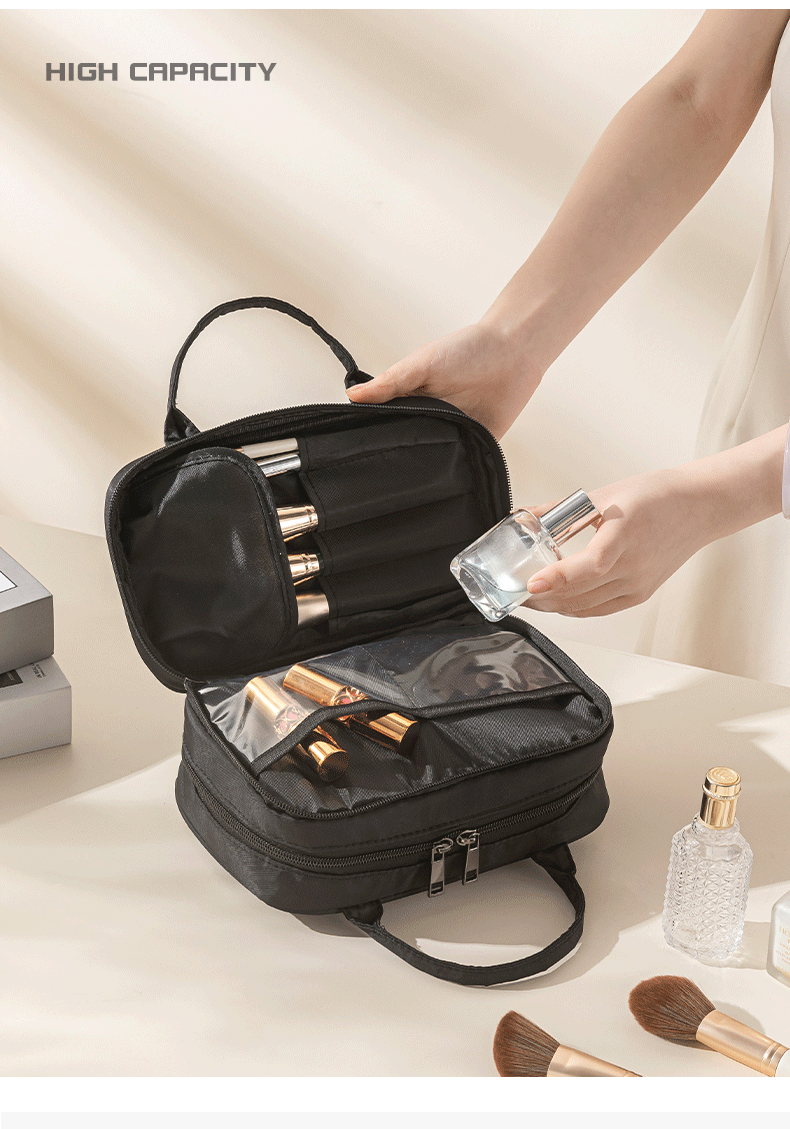 새로운 더블 레이어 화장품 가방 대용량 휴대용 화장실 가방 여행 다기능 저장 가방 화장품 브러시 키트
