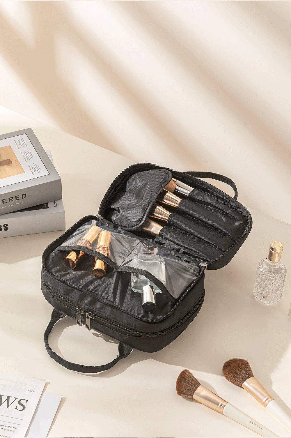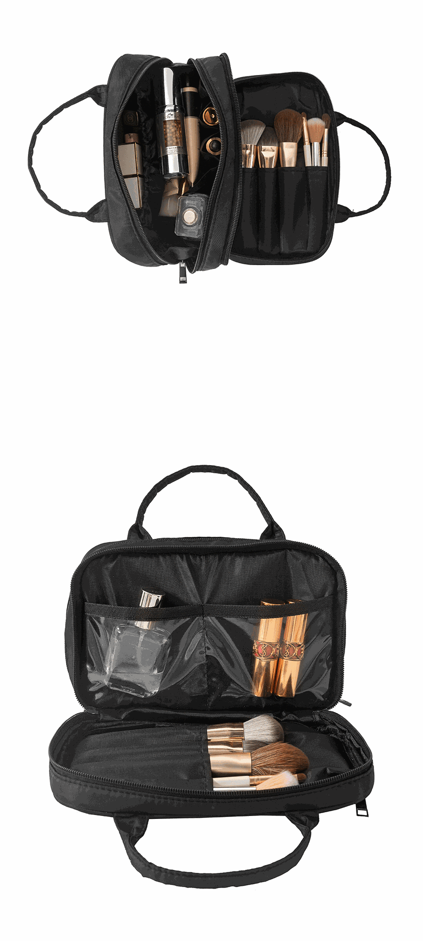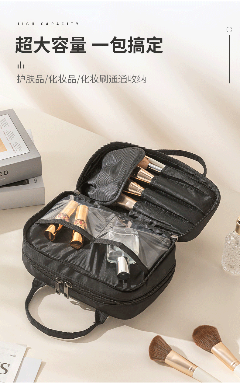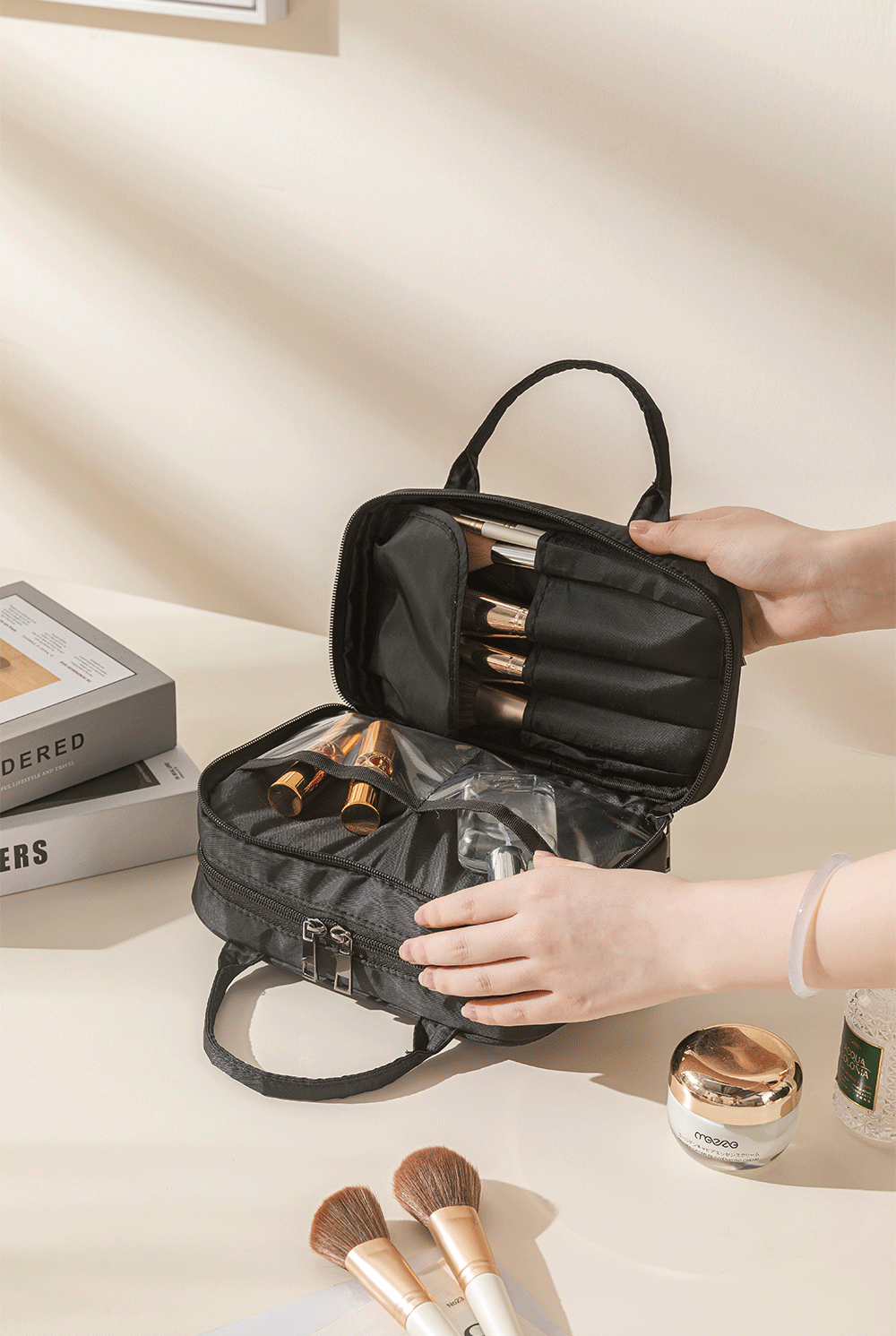 새로운 더블 레이어 화장품 가방 대용량 휴대용 화장실 가방 여행 다기능 저장 가방 화장품 브러시 키트