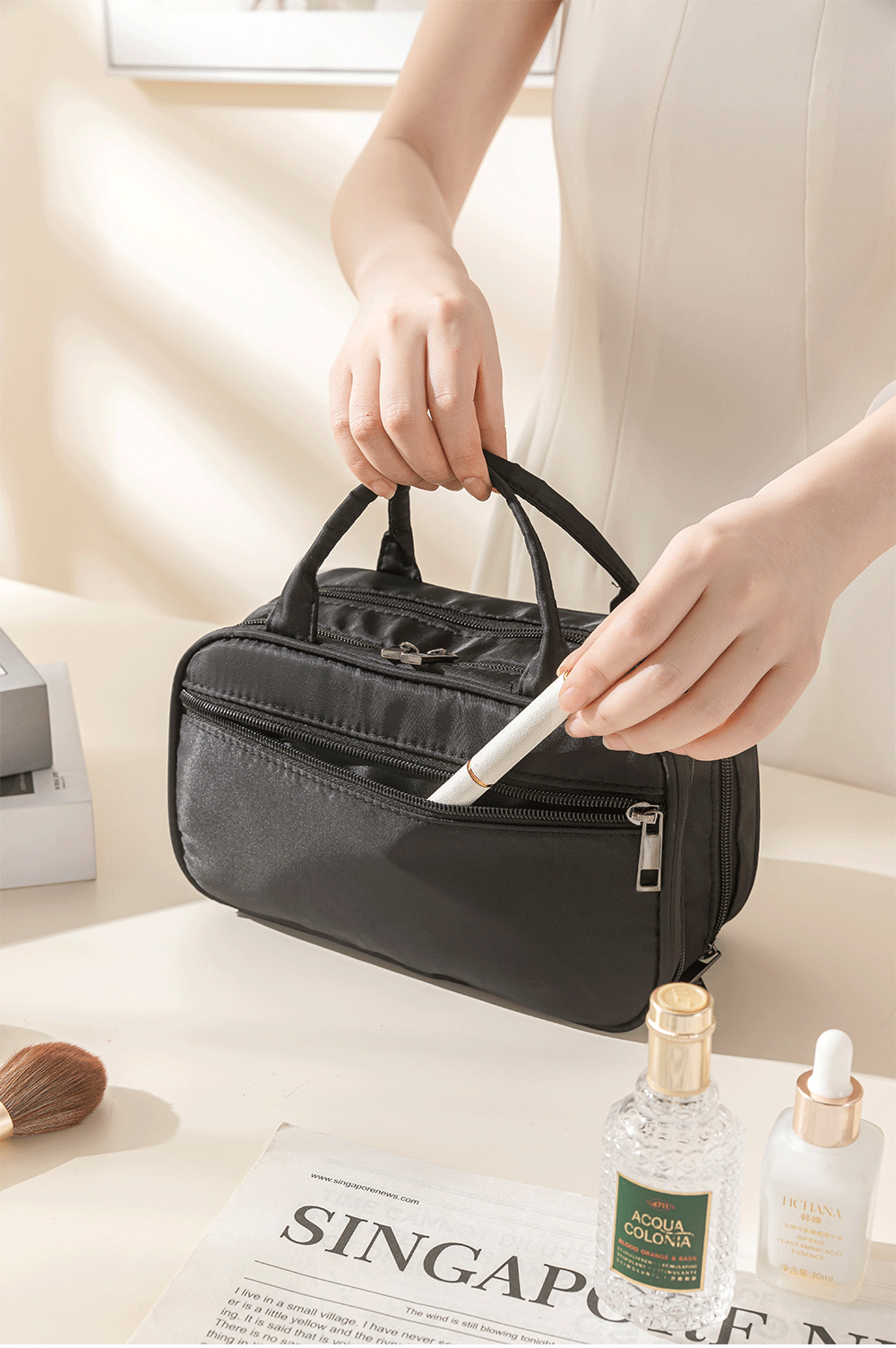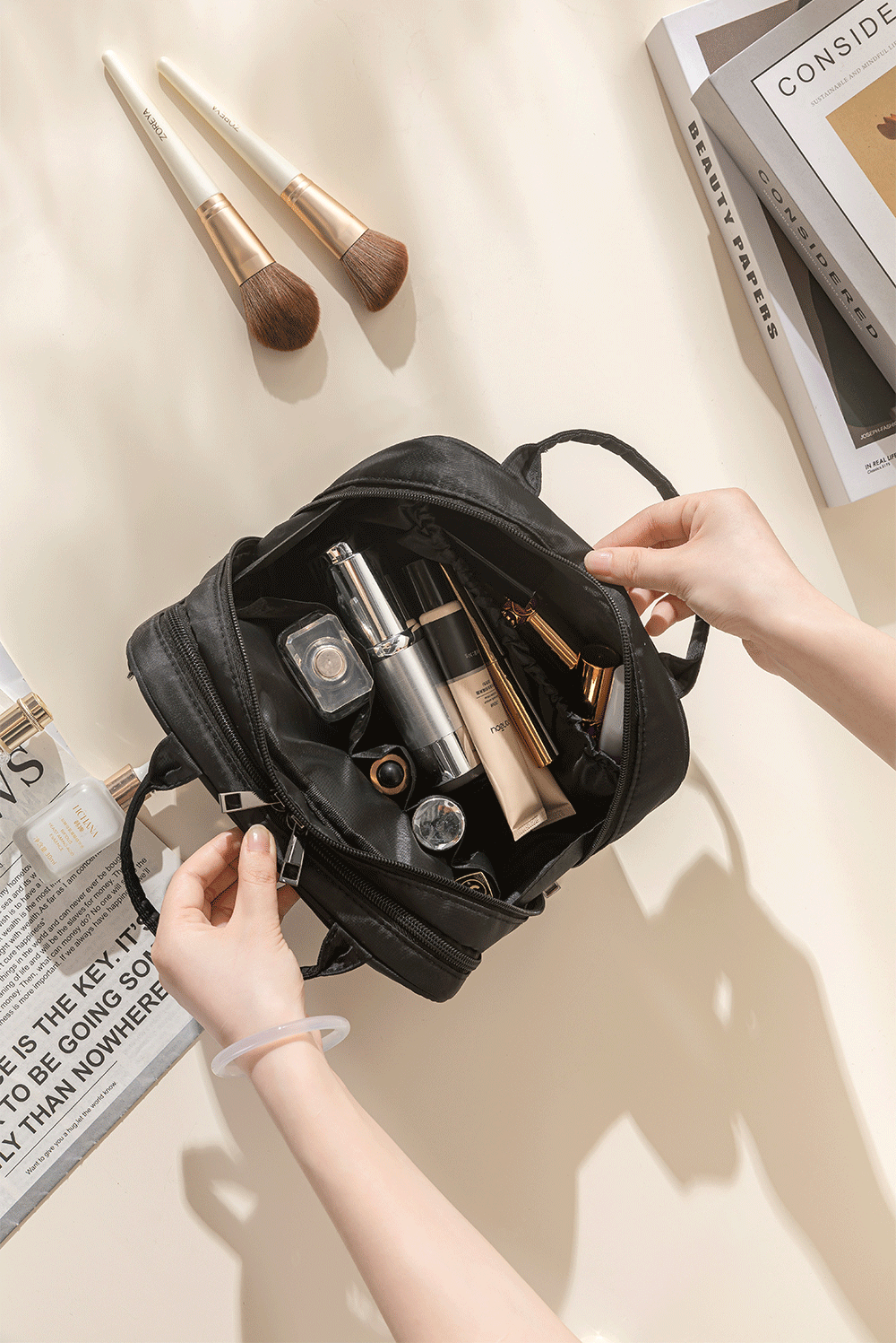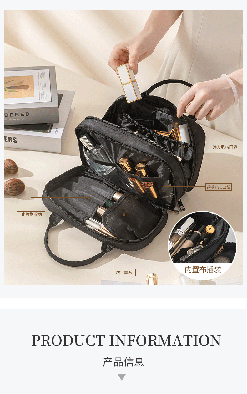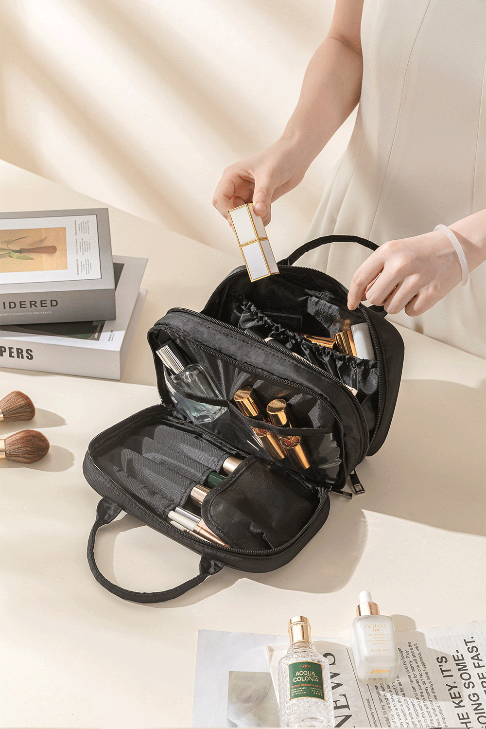 새로운 더블 레이어 화장품 가방 대용량 휴대용 화장실 가방 여행 다기능 저장 가방 화장품 브러시 키트