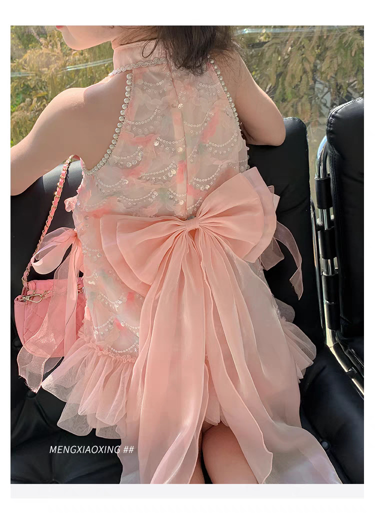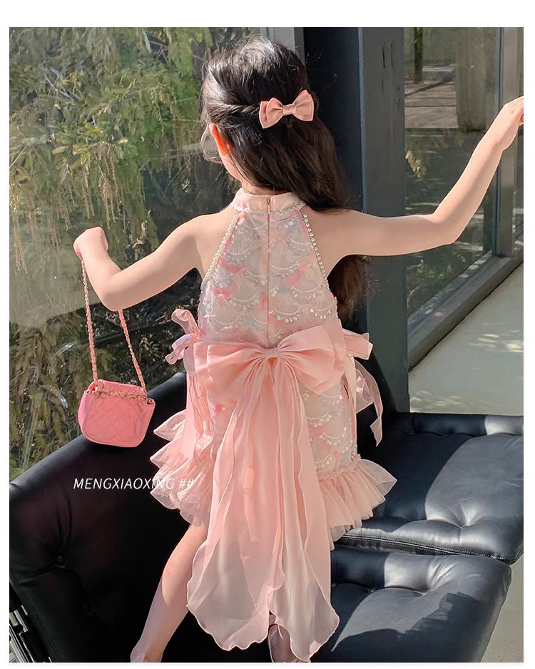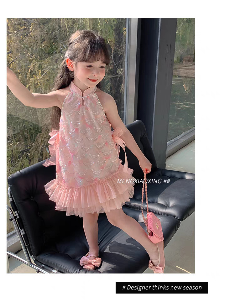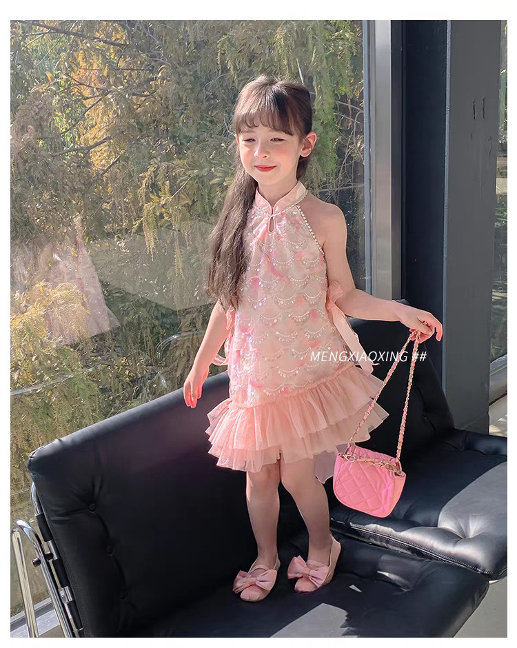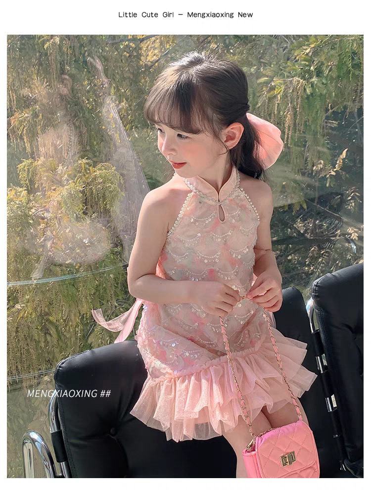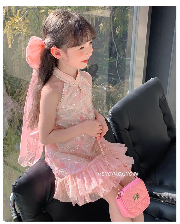 소녀 스커트 2024 여름 새로운 중국 스타일 청삼 새로운 중국 스타일 우아한 선박 원피스 여름 슬링 원피스