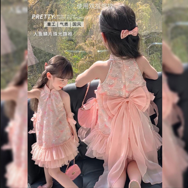 소녀 스커트 2024 여름 새로운 중국 스타일 청삼 새로운 중국 스타일 우아한 선박 원피스 여름 슬링 원피스스토어 가기