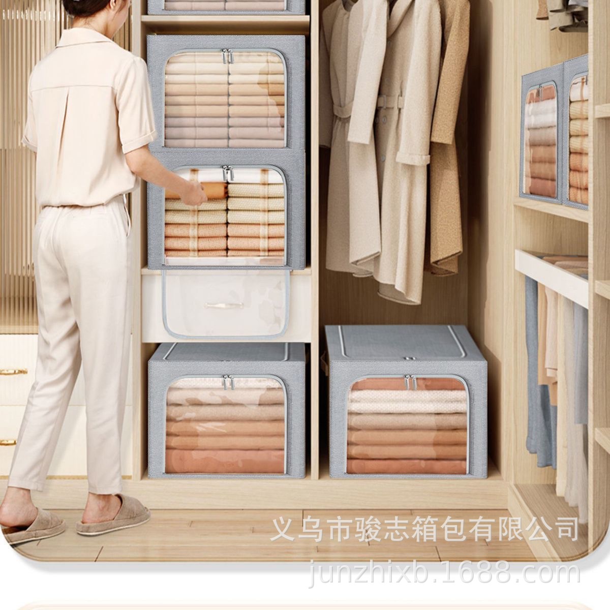 옷장 침실 수납 정리함 깊고 두꺼운 천 소재 스웨터 투명 상자 가정용 대형 이불 보관함