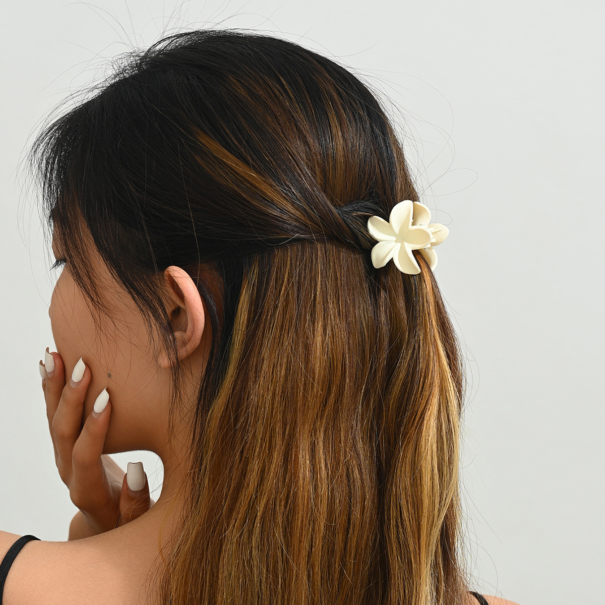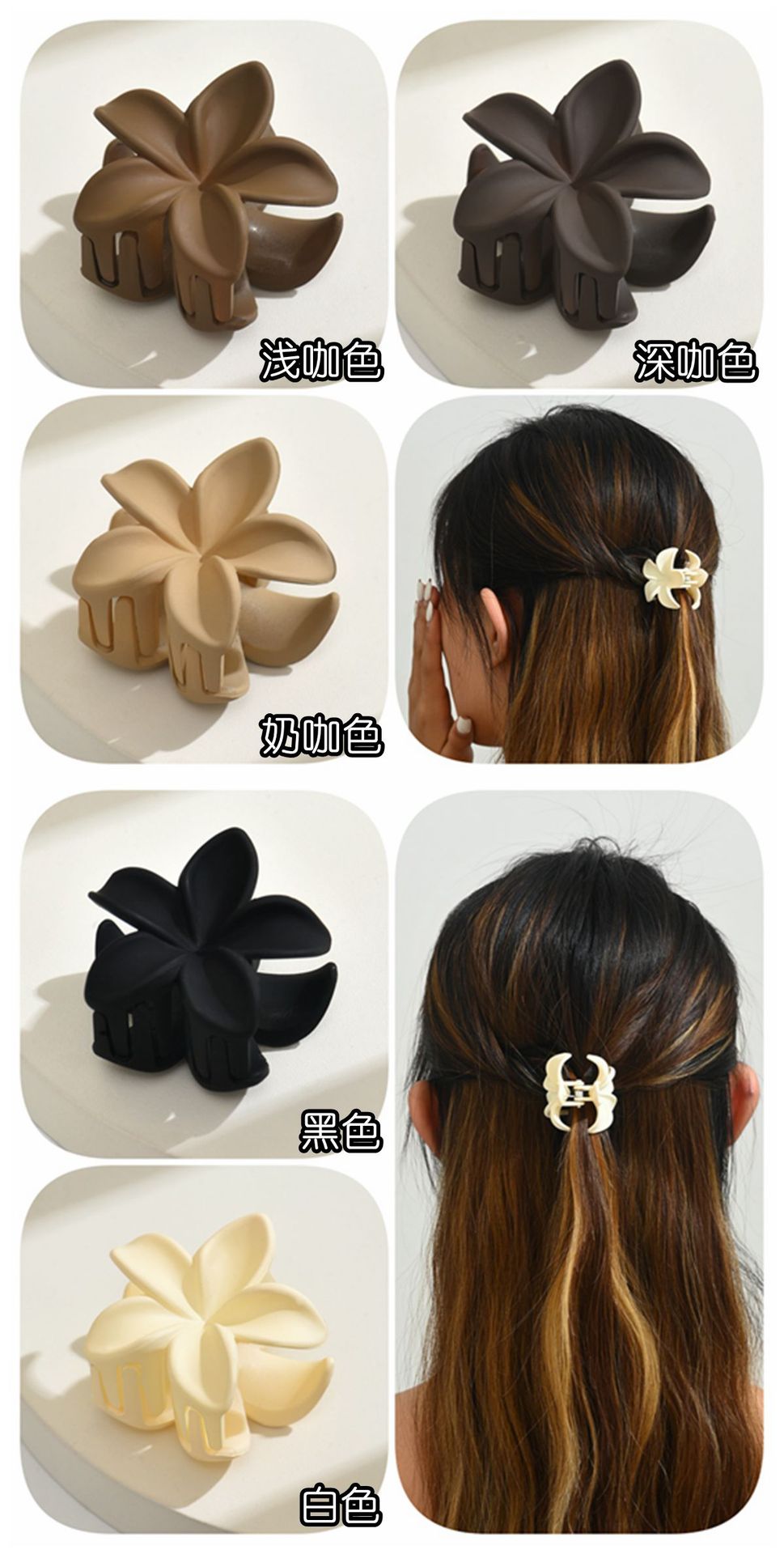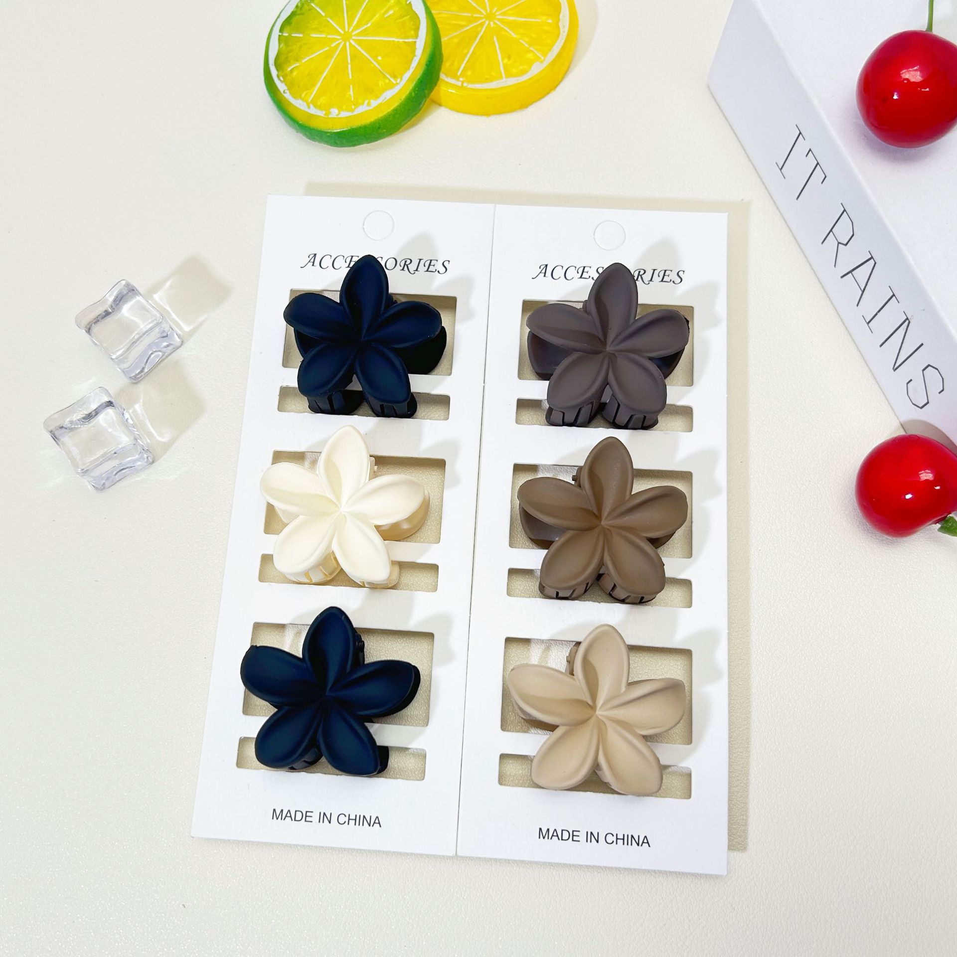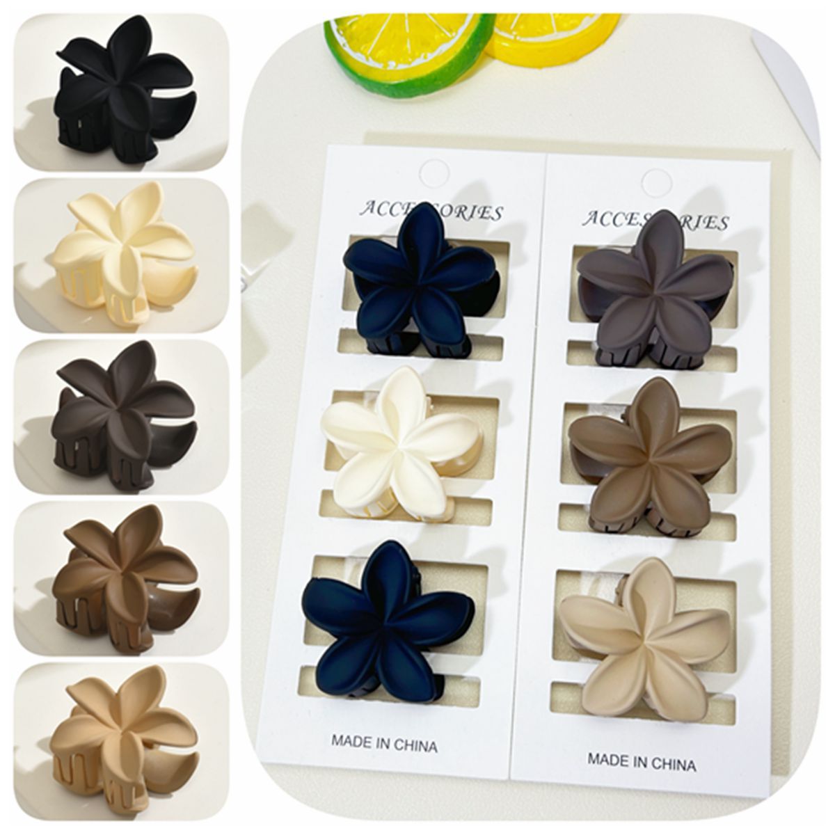 4CM 간단한 중간 계란 꽃 잡아 클립 프로스트 헤어핀 여성의 등 머리 반 포니 클립 상어 클립 헤어핀