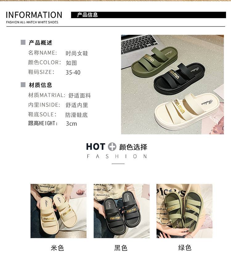 2024夏季新款厚底一字拖鞋女外穿时尚韩版松糕跟女鞋字母沙滩凉鞋