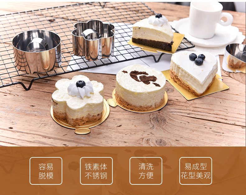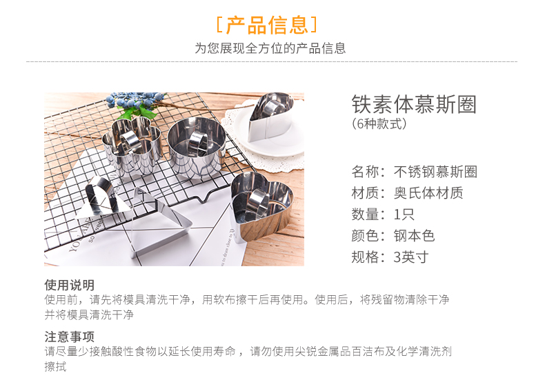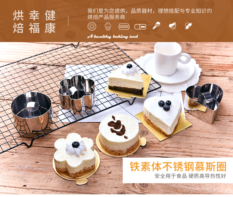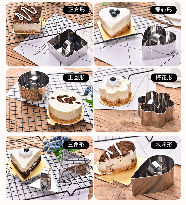 무스 서클 스테인레스 스틸 커팅 금형 작은 케이크 금형 라운드 하트 스퀘어 베이킹 도구