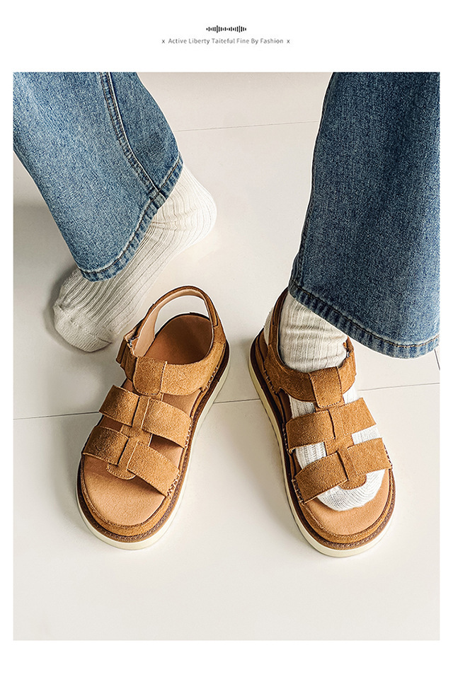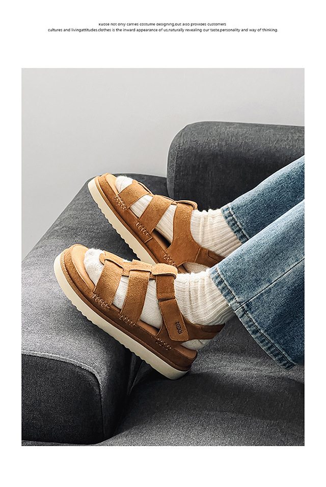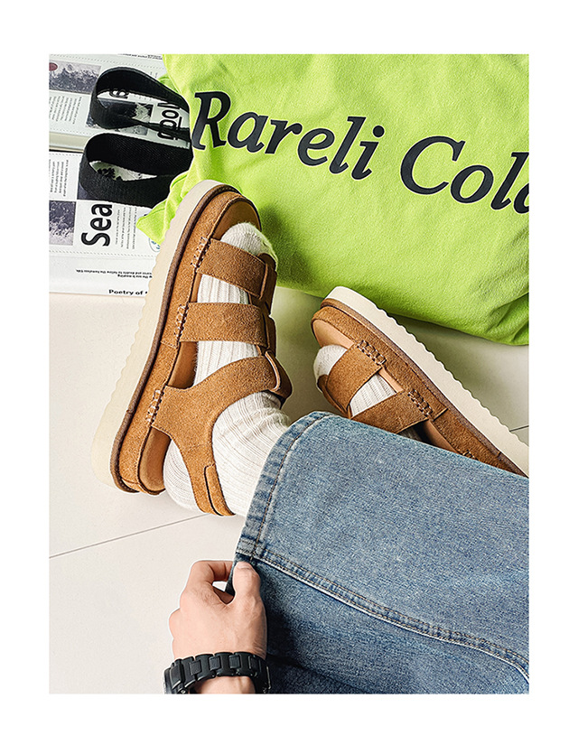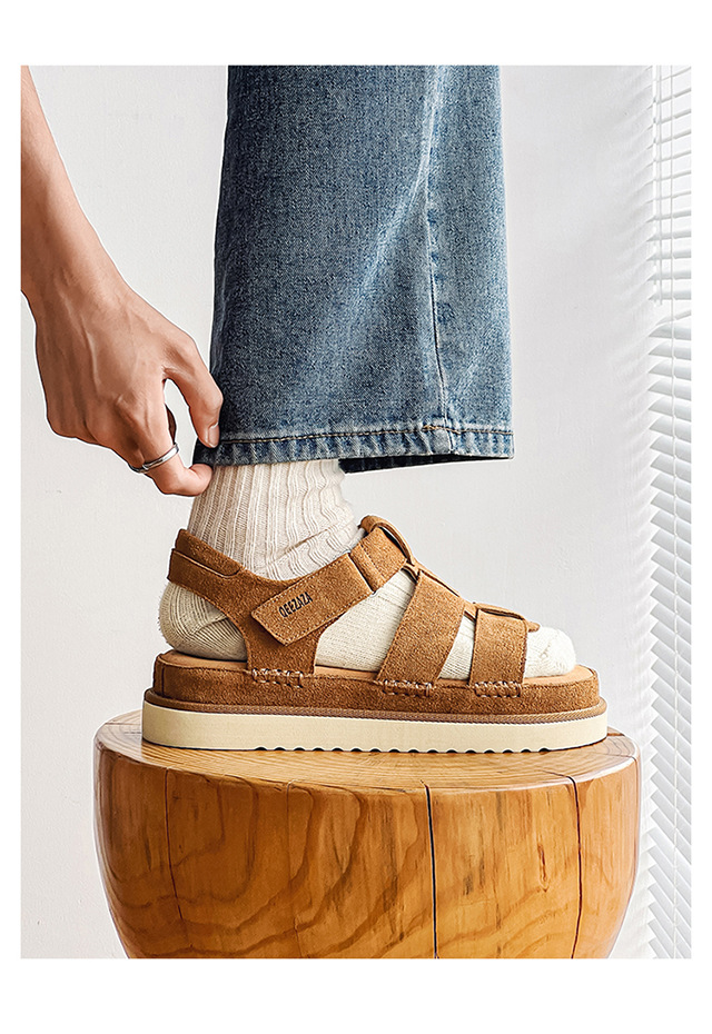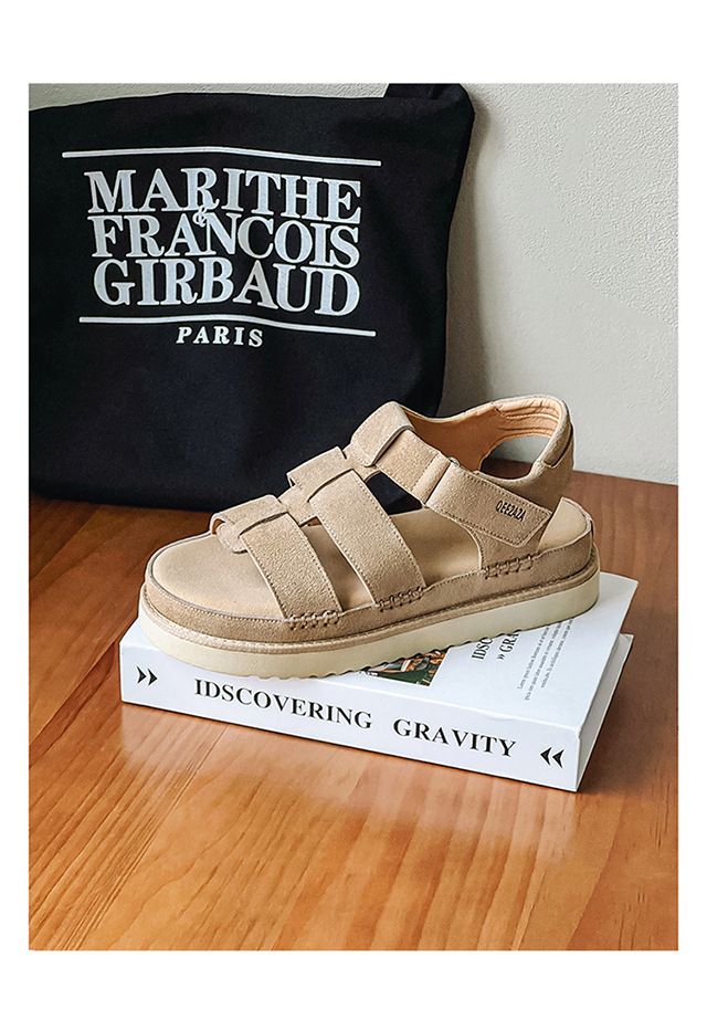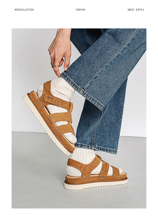 2024 남성과 여성을위한 새로운 틈새 정품 가죽 샌들 오리지널 디자인 센스 올 매치 아우터 웨어 샌들 여름 통기성 비치 슈즈