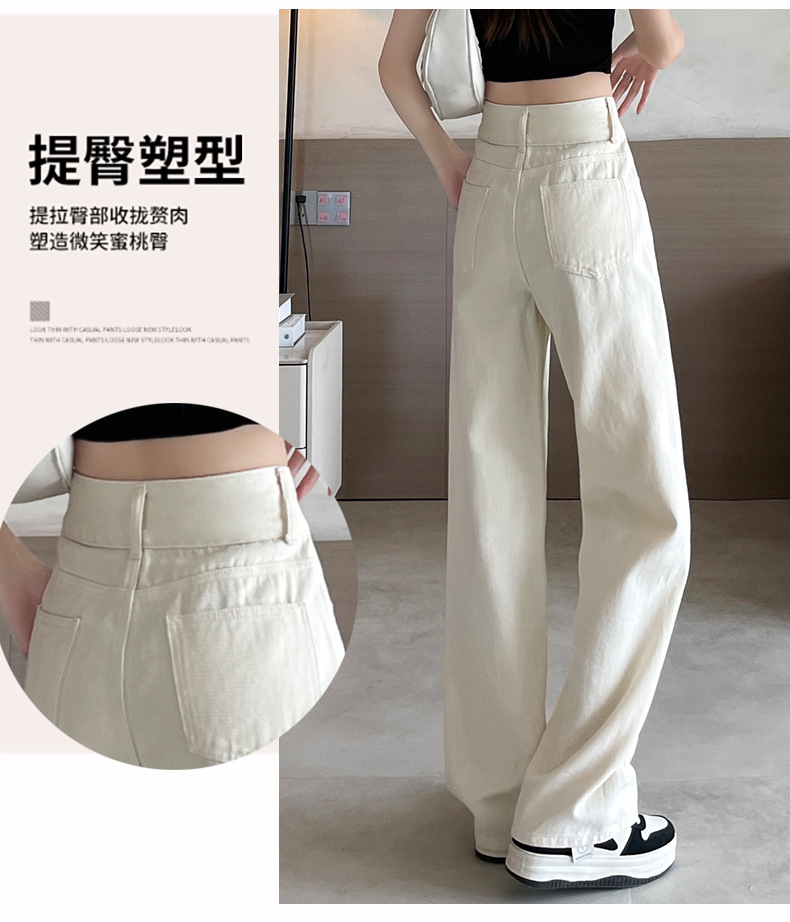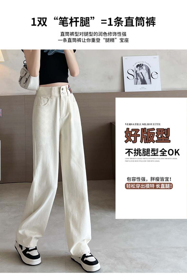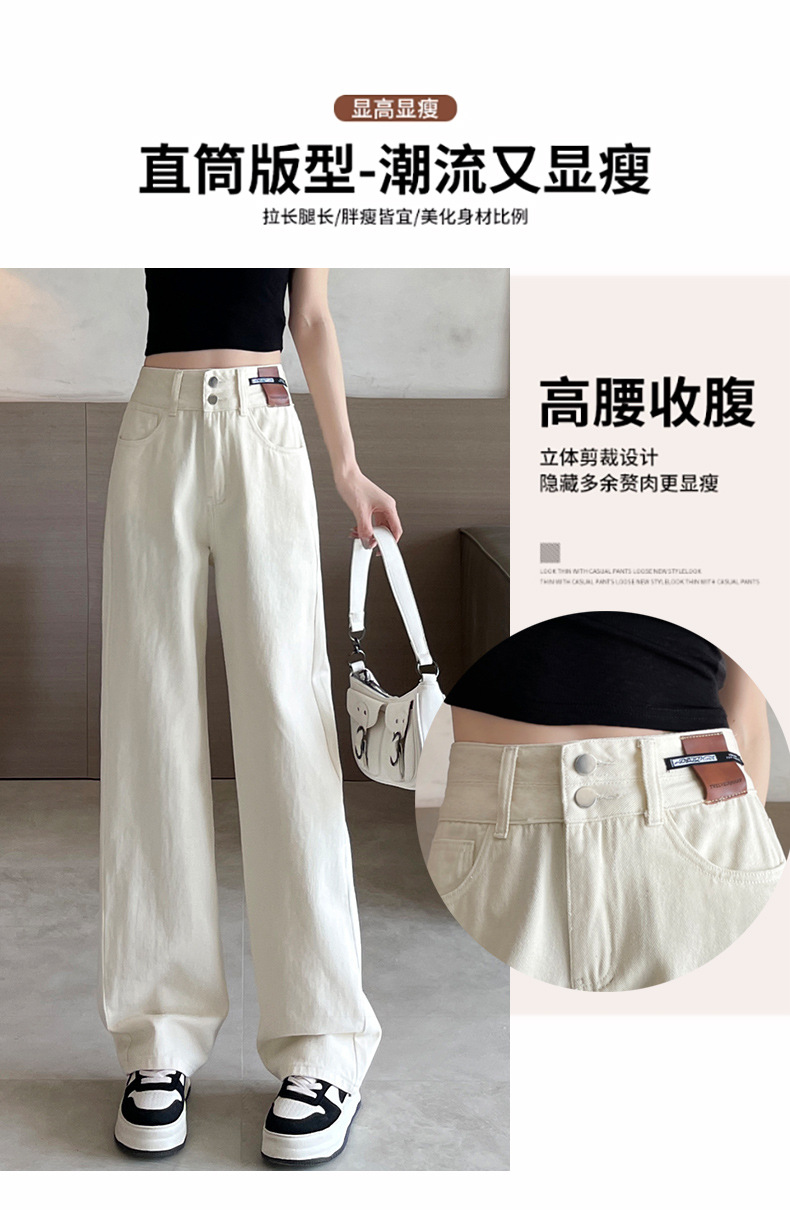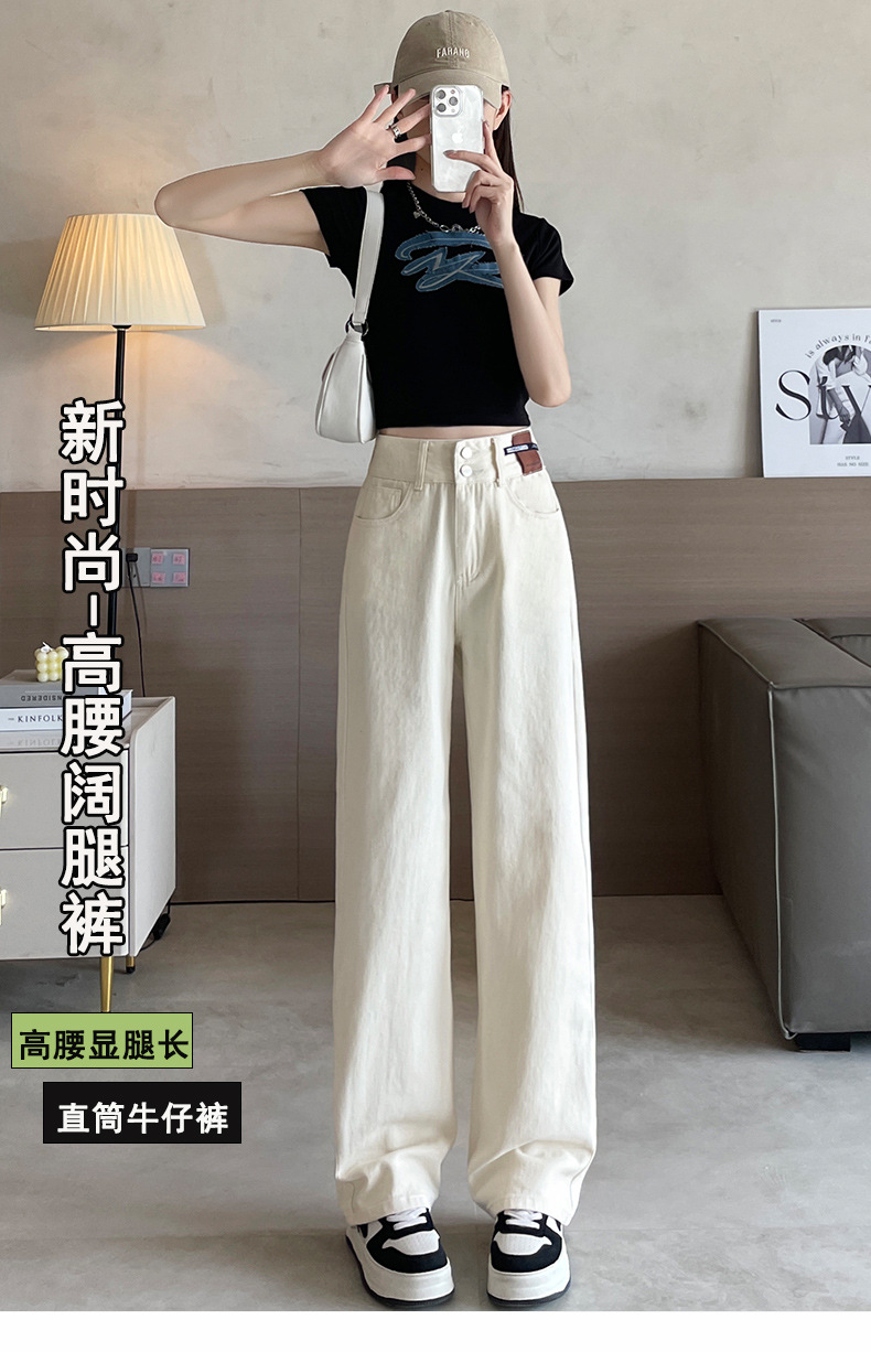 9815 데님 스트레이트 다리 바지 느슨한 넓은 다리 좁은 청바지 높은 허리 두 배 가슴 우아한 슬리밍 다리 길이스토어 가기